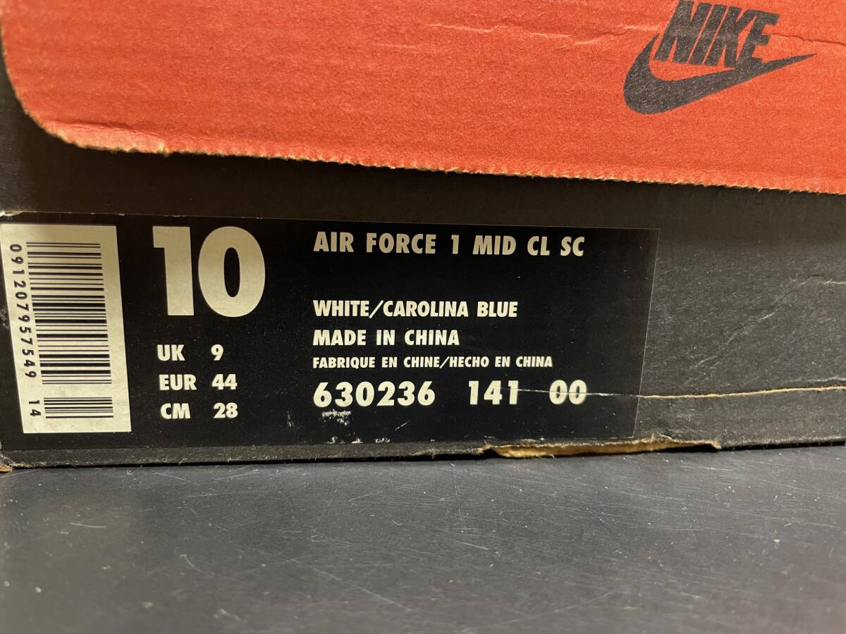 1996年製 未使用 日本未発売 デットストック 当時物 nike エアフォース1 MID CL SC ノースカロライナ レザー US10 日本サイズ28cm ナイキ