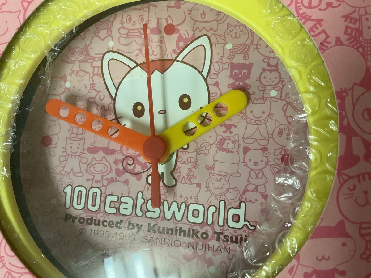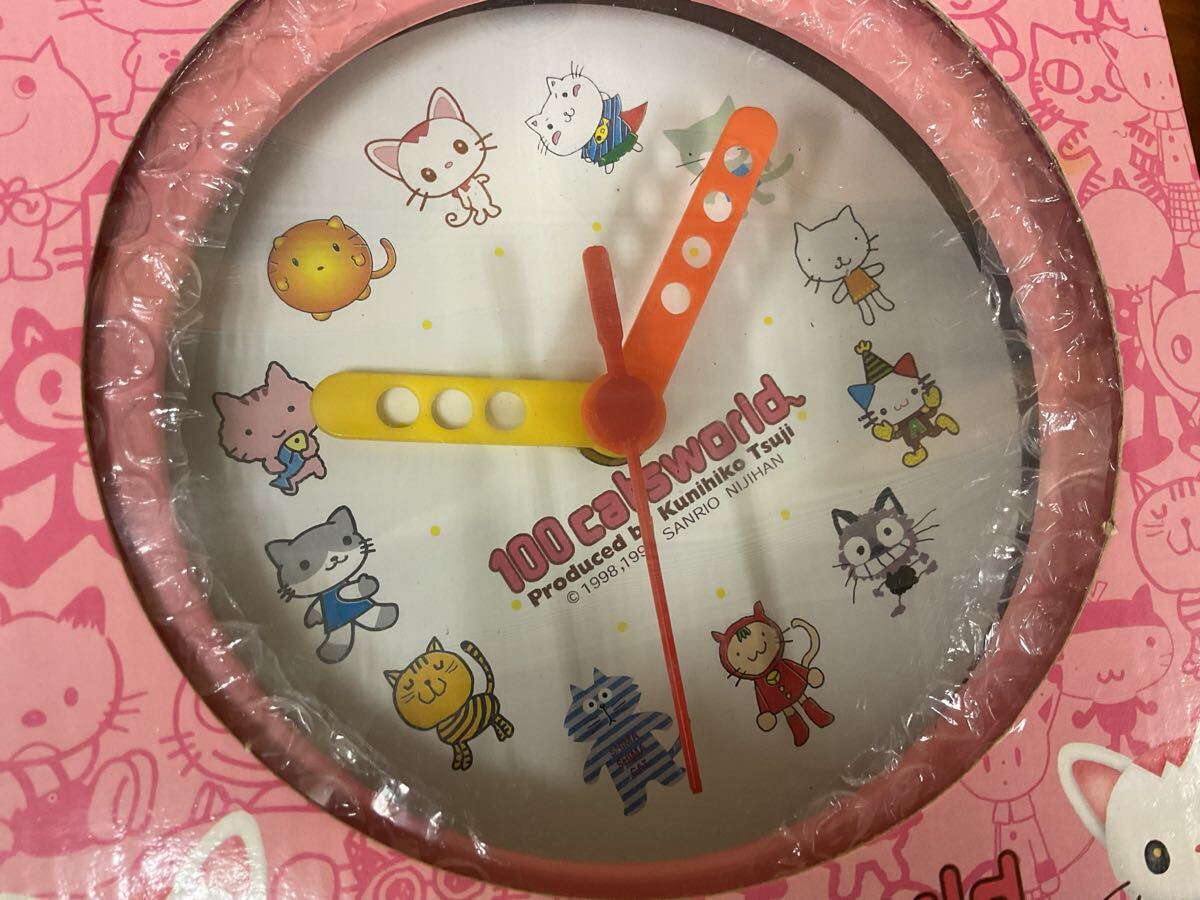 当時物 未使用 保管品 サンリオ 100catsworld Kunihiko Tsuji ウォールクロック 壁掛け時計 昭和レトロ 1990年代     A