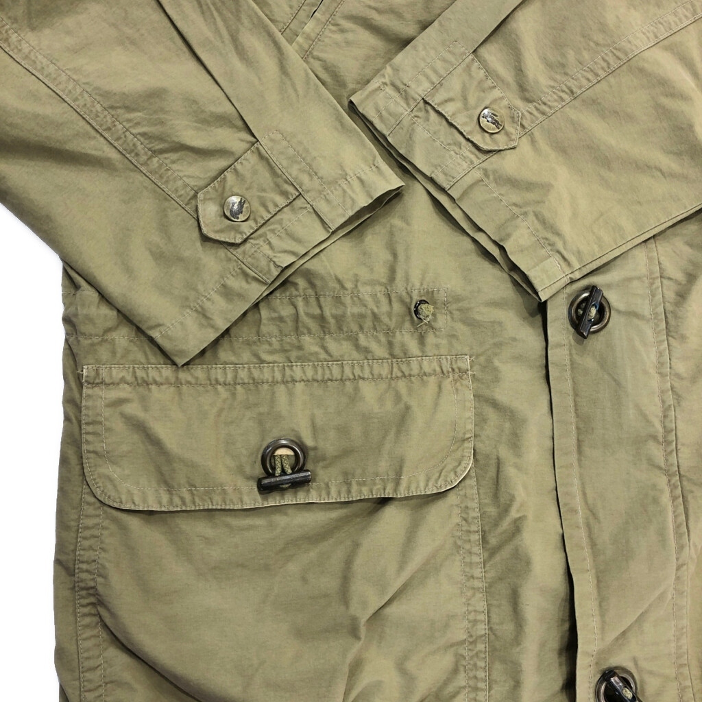 【商品管理番号】 V2922 【ブランド】 LACOSTE/ラコステ 【サイズ】 4 【実寸サイズ】 肩幅:約55cm 着丈:約82cm 身幅:約64cm 袖丈:約60cm 【主な素材】 表地 : コットン 【色】 カーキ 【仕様】 生産国 : フランス製 フード収納可能、ウエストドローコード 【状態】 汚れ:背中 特記事項:変色、金具錆び |