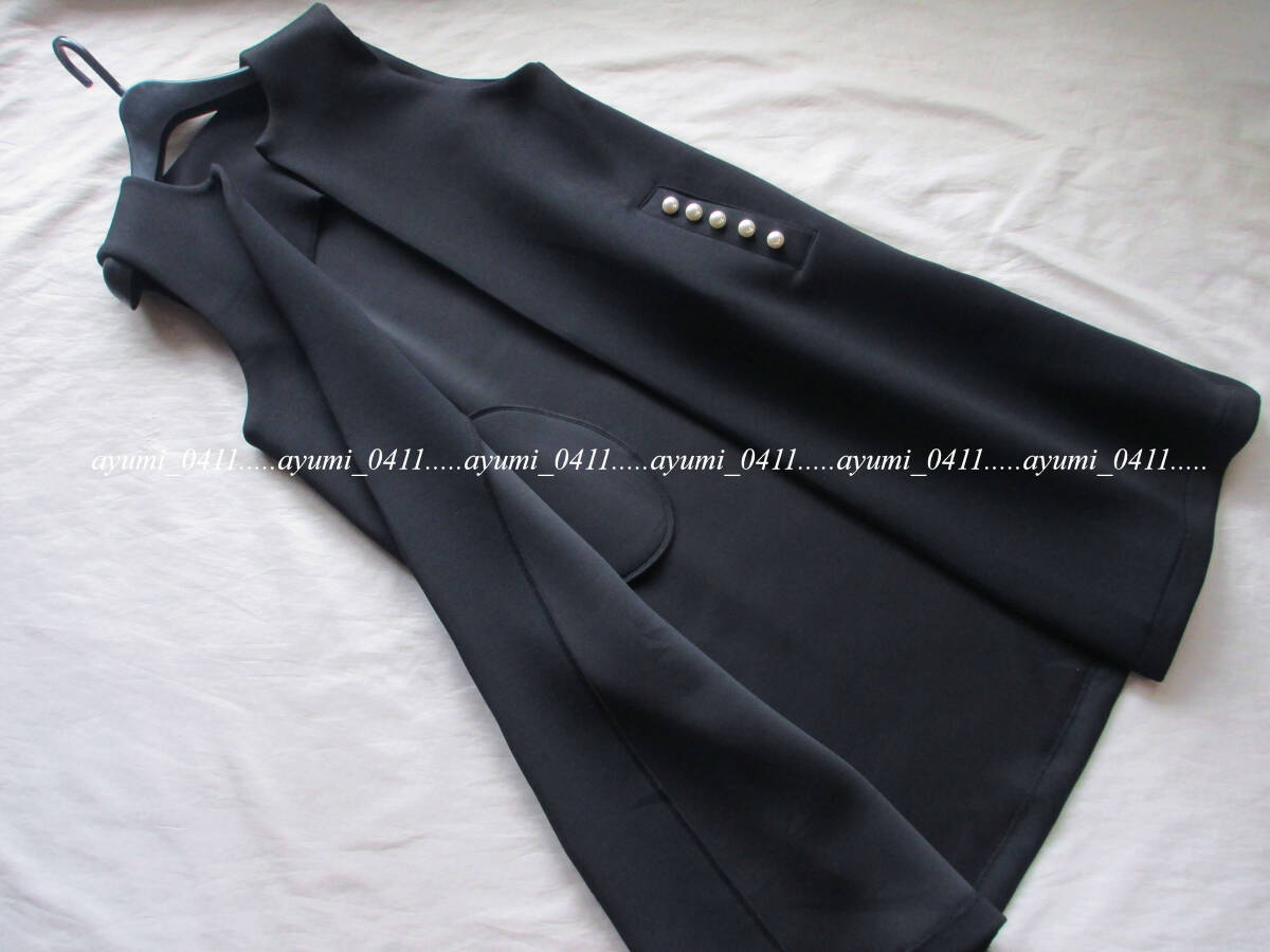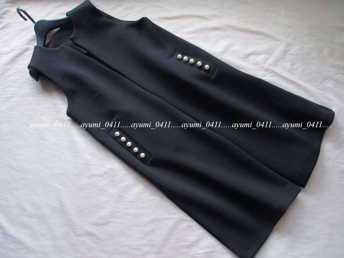 ★未使用★Bonjour Sagan 『Deux Amour』黒ブラック・パール付き キレイめポンチ ロングジレ/M~L/ボンジュールサガン