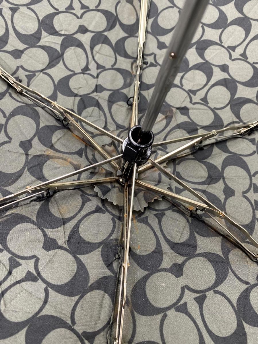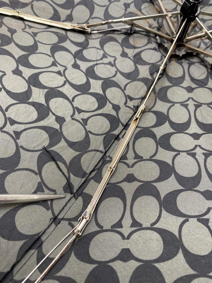 商品の状態 | 石突が無い状態で、内側が錆びています。また、骨組みの一か所に糸のほつれがあります。閉じたままの全長:18cm/幅5.5cm開いた状態の全長:88cm 使用感がございますが、まだまだ活躍してくれると思います。 (当方管理番号:syfi191463-t) | ||