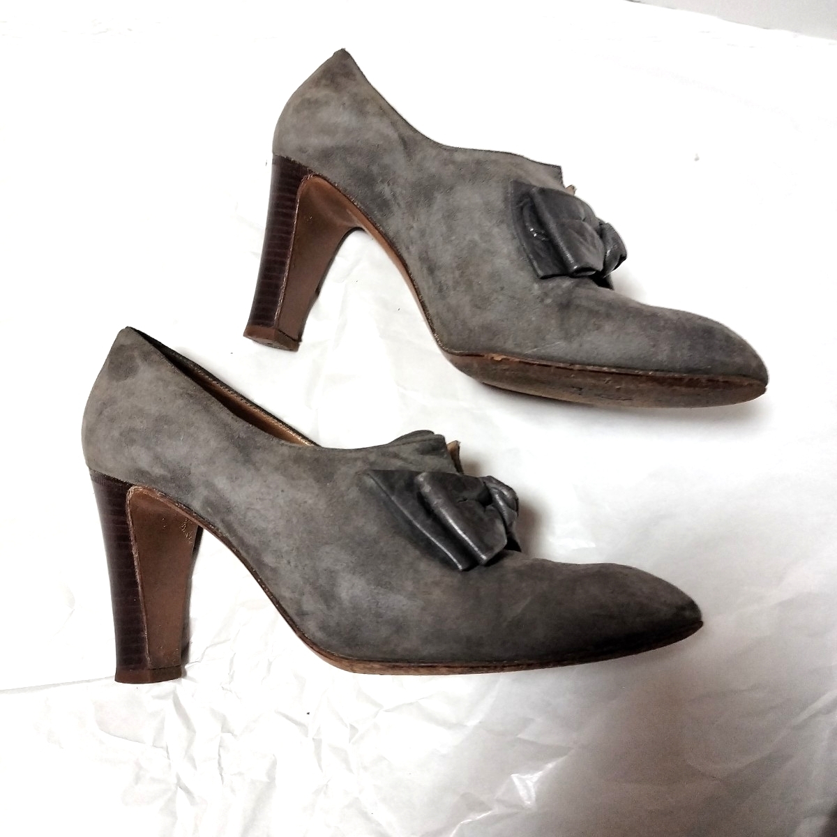 【商品の状態】ヴィンテージショップで買ったもので使用したのは2、3回程です。購入時から写真くらいの経年感がありました。一目ぼれして買いましたが手持ちの服と中々合わせることが難しく、ヒールの高さもキツくなってきましたので気に入って頂けた方に。