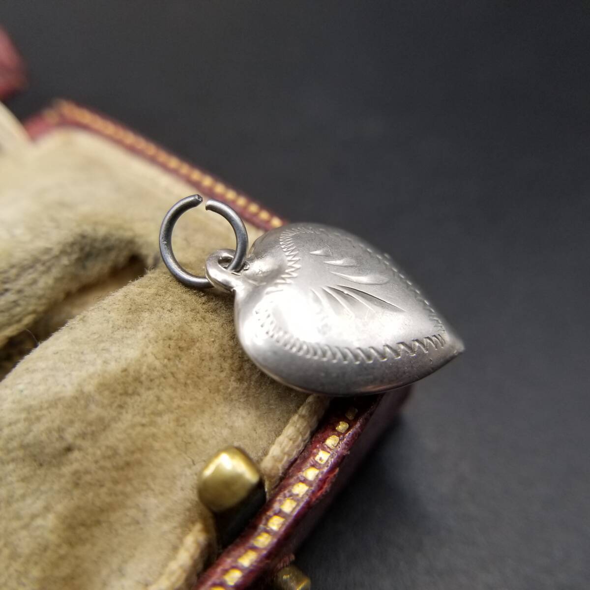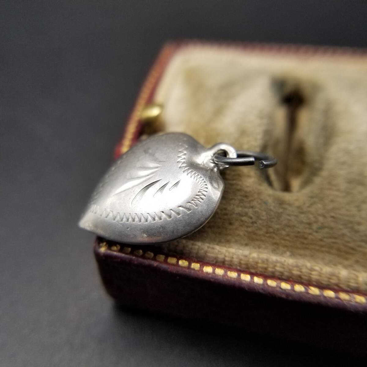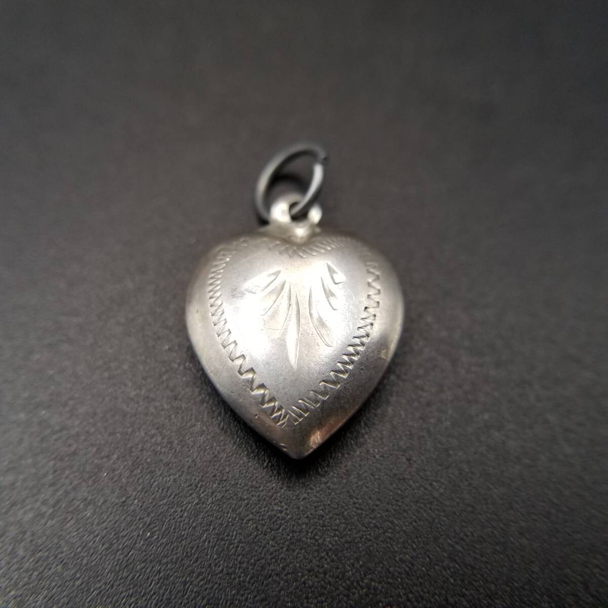 WWII期 ヴィンテージ スウィートハートジュエリー ジグザグフレーム 925 シルバー チャーム ペンダントヘッド 銀 Puffy Heart Y21-F
