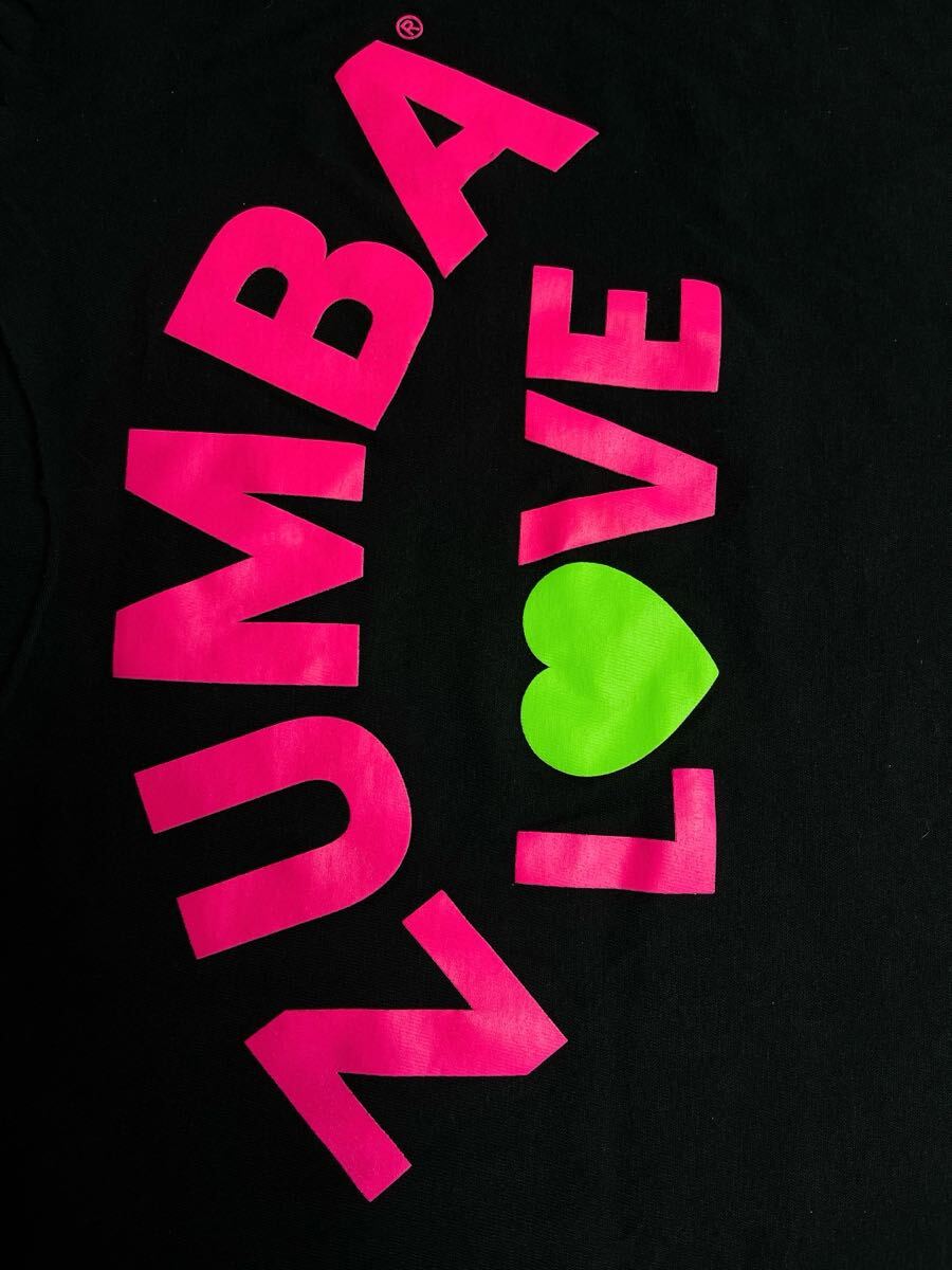 シックなブラックに可愛い色でZUMBAとハート プリント。