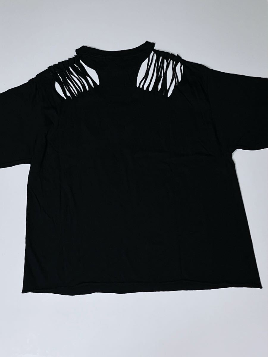 襟ぐり、袖、裾カット、胸上、背中上に切り込みを入れています。