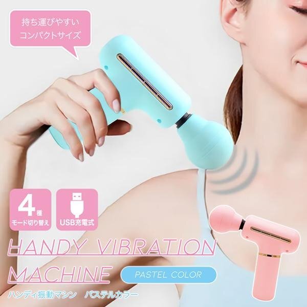 ハンディ振動ガン [ピンク] 最新型 USB充電式 コードレス 筋膜 リリースガン 強さ4段階 USB充電式 軽量 コンパクト 首 ギフト おしゃれ