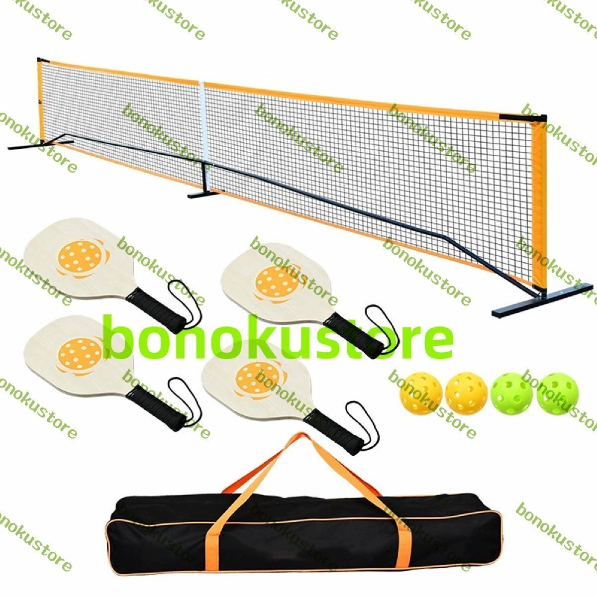 ピックルボールネット 屋内/屋外 ポータブル テニスネット 6.7M 規定サイズ 練習用ネット 専用ピックルボールパドル4個 ピックルボール4個付き 収納バッグ付き 裏庭用 私道用 組み立て簡単 各天候条件対応
