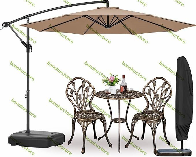 この商品について【2024新 ガーデンパラソルセット】: 大型ガーデンパラソルセットは、直径300cmのシングルトップパラソル、60kg水タンクベース、そしてパラソルカバーが含まれています。【高級固溶染色生地】:2024年の新しいガーデンパラソルは、210Gの固溶染色生地を使用し