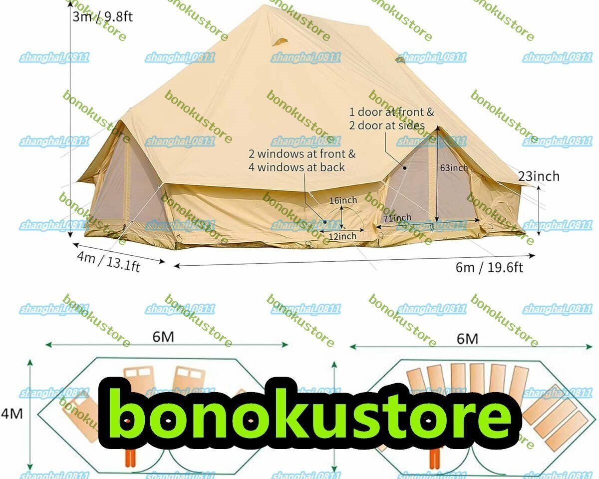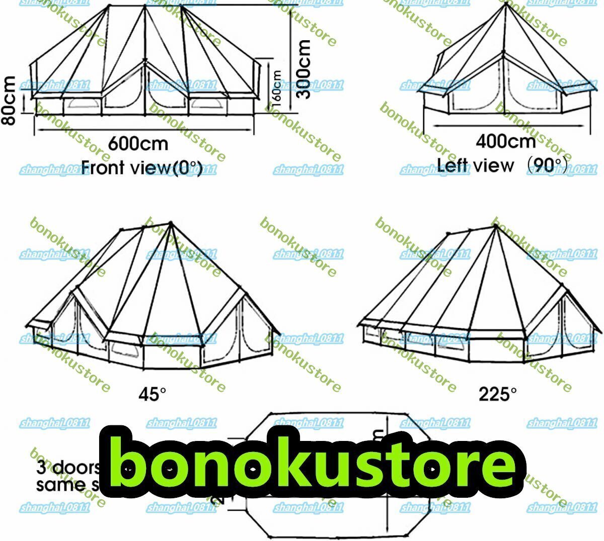 商品説明 【商品詳細】★状態:新品未使用【大きいサイズ】:屋外キャンプテントのサイズは600*400*300cmです。 8?12人のキャンプ、ハイキング、家族の集まりに適しています。 (19.6フィート/6メートル)【3つのメッシュドア】:テントには3つのAタイプドアがあり、簡単に出入