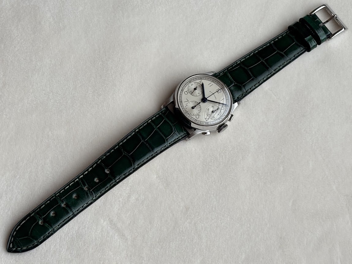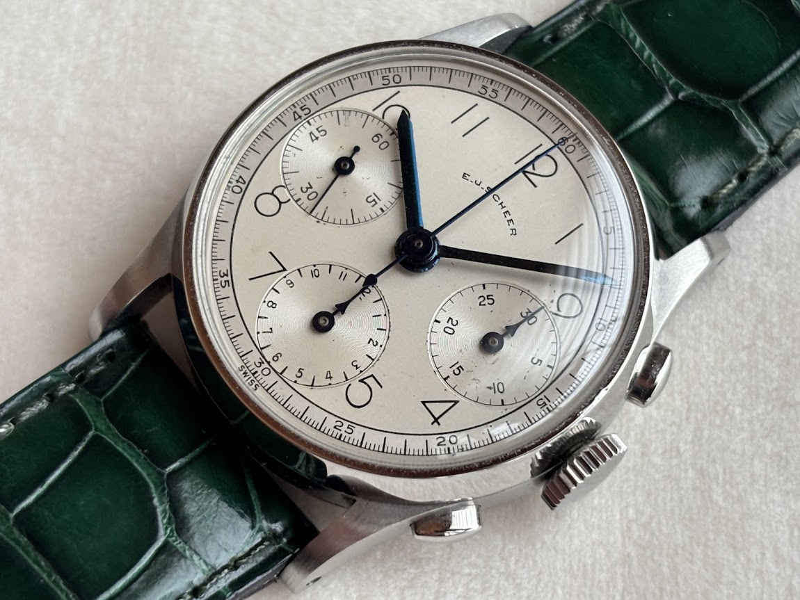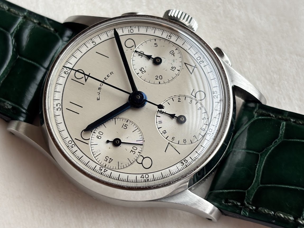 1940年代と思われる   希少な    E.J.SCHEER     クロノグラフ  手巻き式  極美品 です。