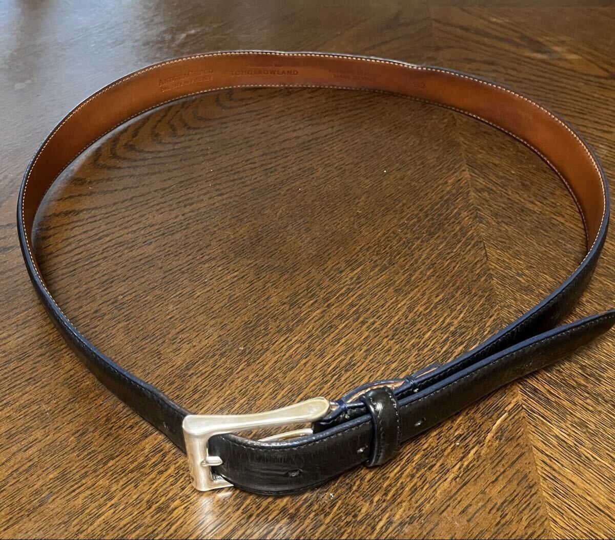 ◆【人気】TOMORROWLAND/Andrea Greco アンドレアグレコレザーベルトNAVY メンズ 90