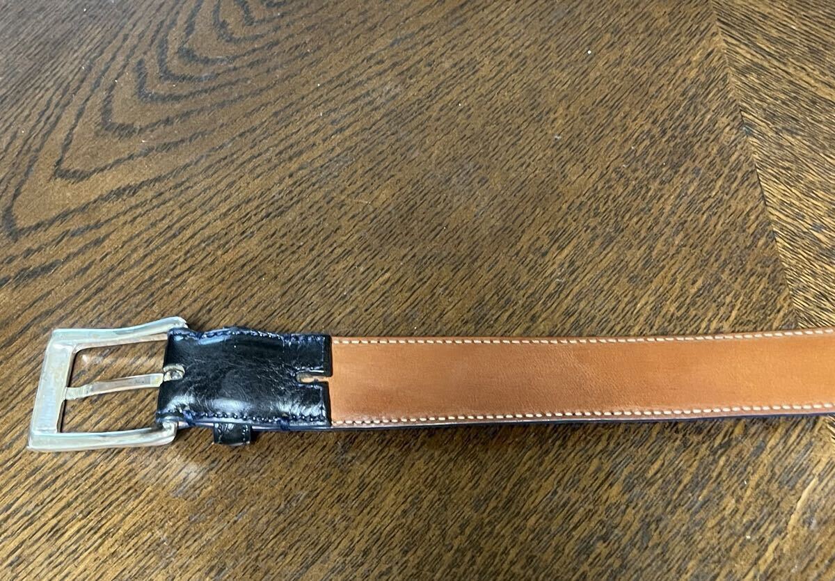 ● Andrea Greco レザーベルトになります。カラーはNAVYです。使用感はございますが、まだ活用して頂ける商品です。興味がある方は宜しくお願いします。使用しました自宅保管の商品になりますので、完璧をお求めの方や、中古商品にご理解の無い方、特に神経質な方は入札をご遠慮下さい。受け取り連絡を入れて頂けない方も、固く入札はご遠慮下さい。落札後はノークレーム ノーリターンで宜しくお願い致します。