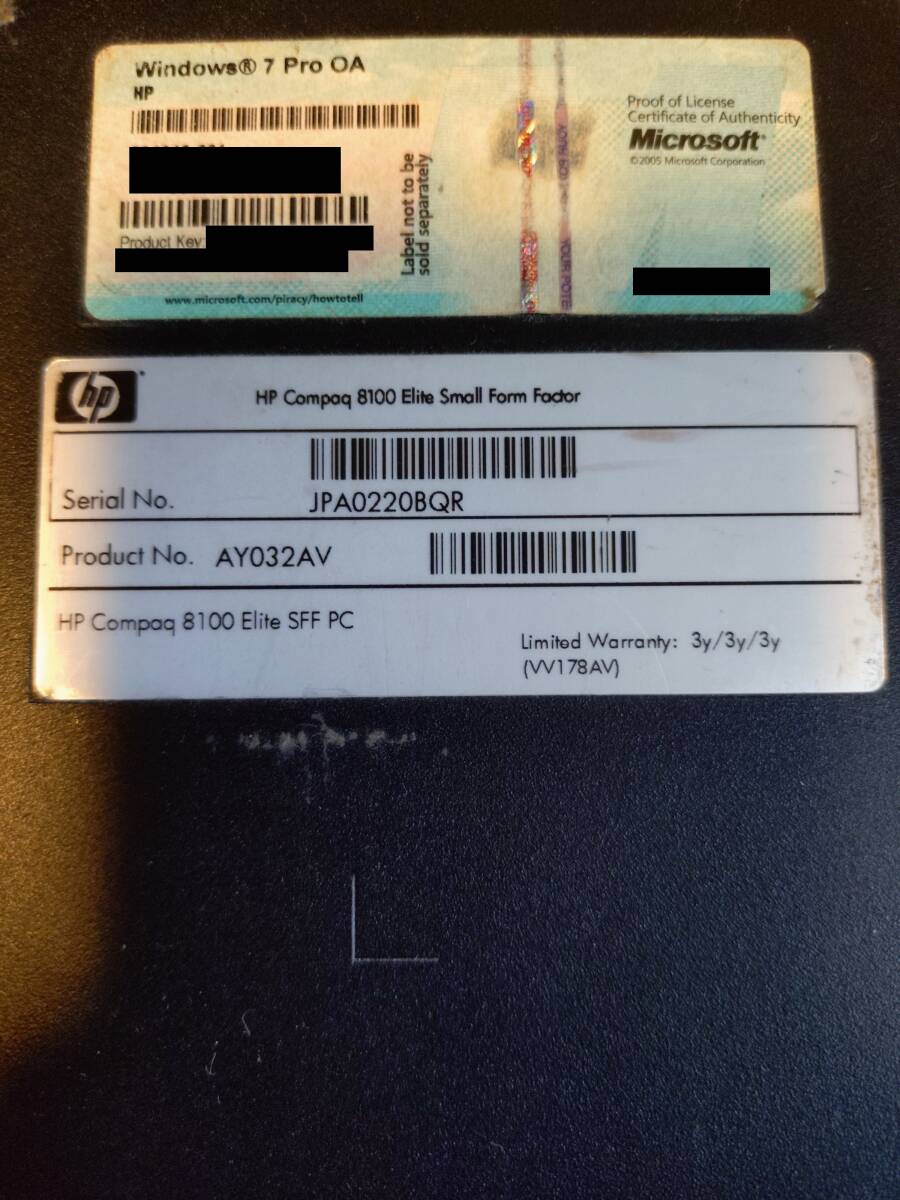 デスクトップPC Windows7 Pro 64bit HP Compaq 8100 Elite Small Form Factor RAM4GB HDD1TB core i5 中古 正常動作品