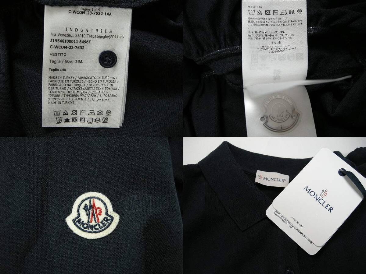 キッズ14A(女性XXS-XS相当)■新品本物保証■モンクレール/VESTITOフリルワンピース/ポロシャツ/ドレス/レディース/MONCLERダークネイビー系