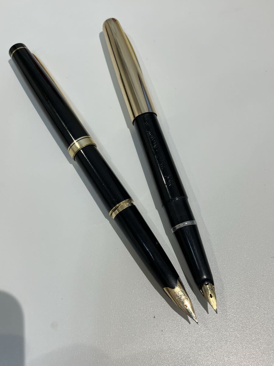 筆記未確認。金キャップの万年筆には文字が彫られてます。