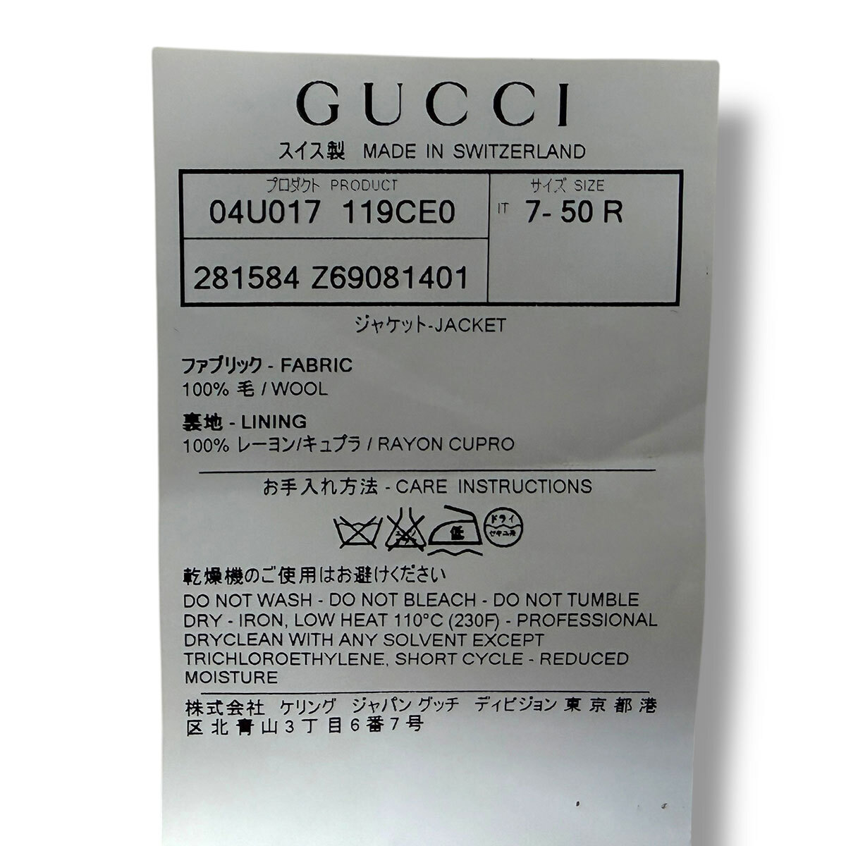 商品について:上質なフランネル素材を使用し、柔らかな風合いと保温性を備えた秋冬向けの一着。クラシカルなピンストライプ柄に、グッチを象徴するホースビット柄の裏地を合わせた、遊び心のあるデザインが魅力です。ダークグレーの落ち着いたトーンはビジネスシーンにも最適で、フォーマルさとモード感を兼ね備えています。シルエットも美しく、羽織るだけで洗練された雰囲気を演出。上質感と個性を両立させたグッチらしいスーツです。