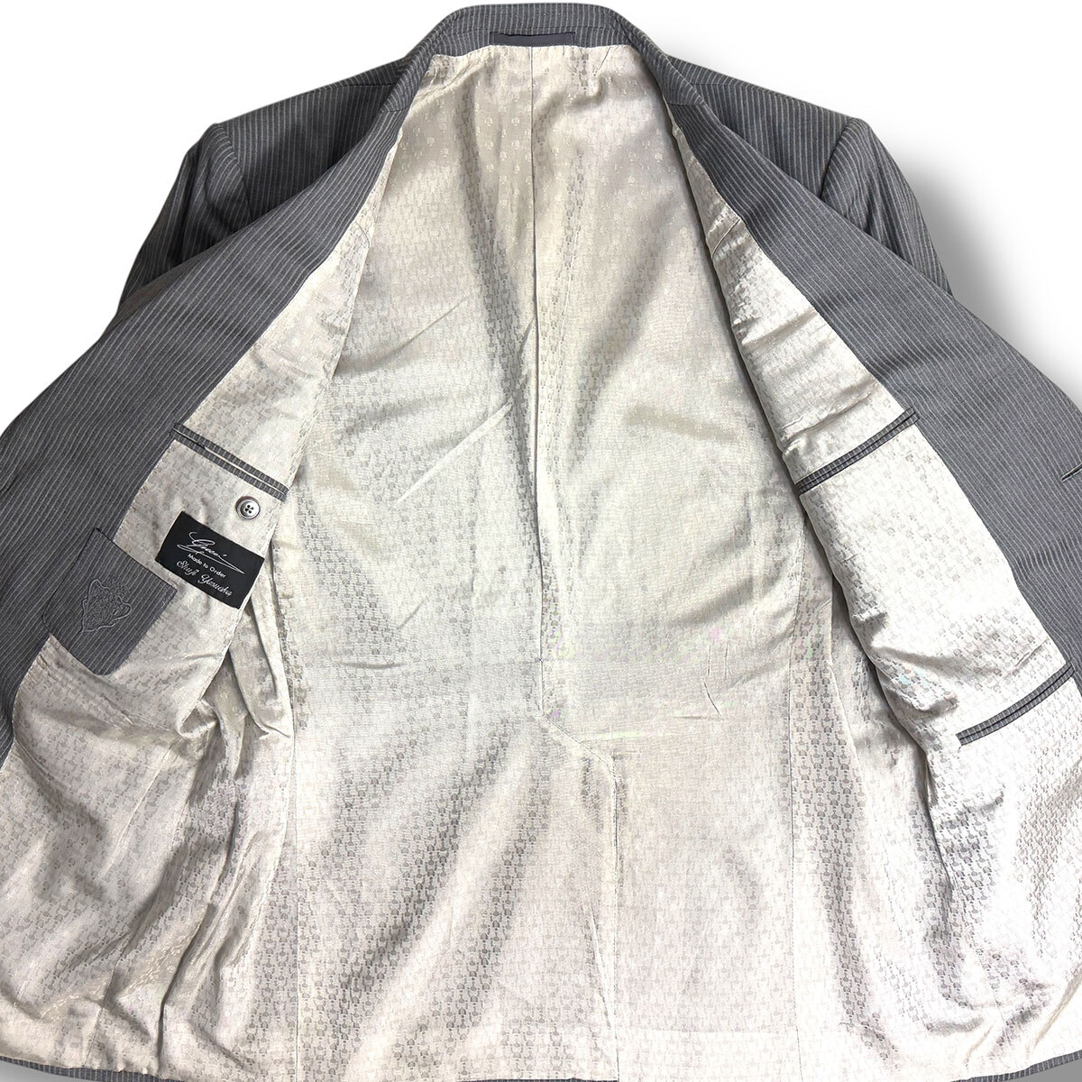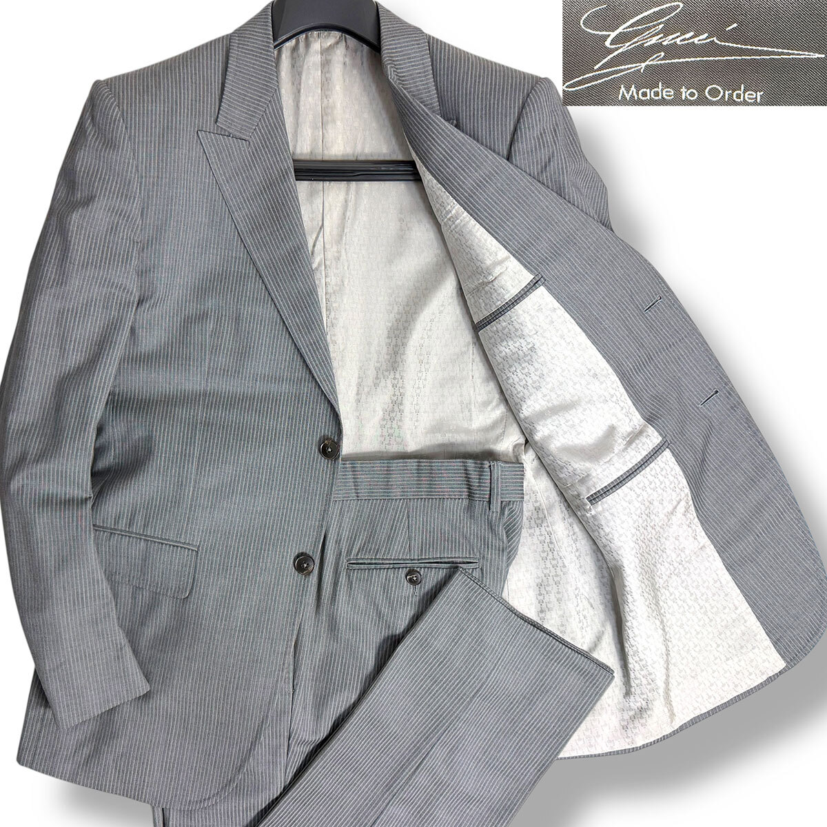 J7079 美品 グッチ ピンストライプ ビット柄裏地 フランネルスーツ ダークグレー 50 GUCCI