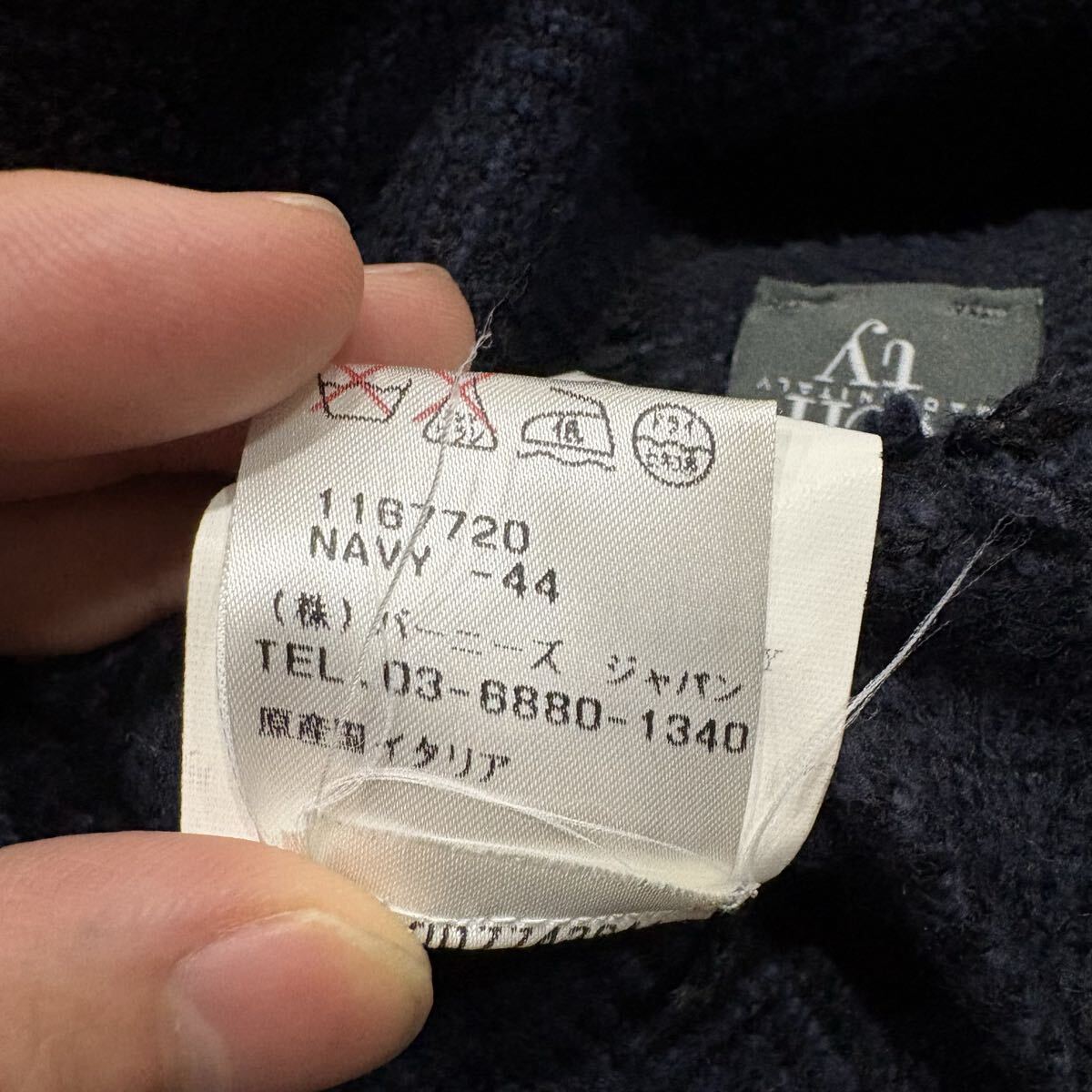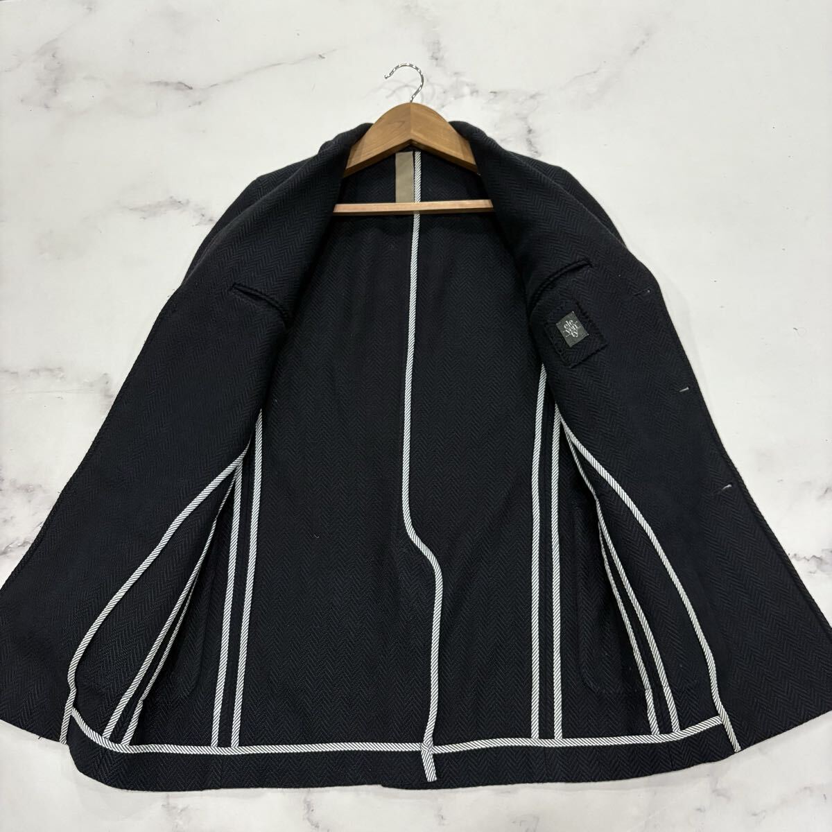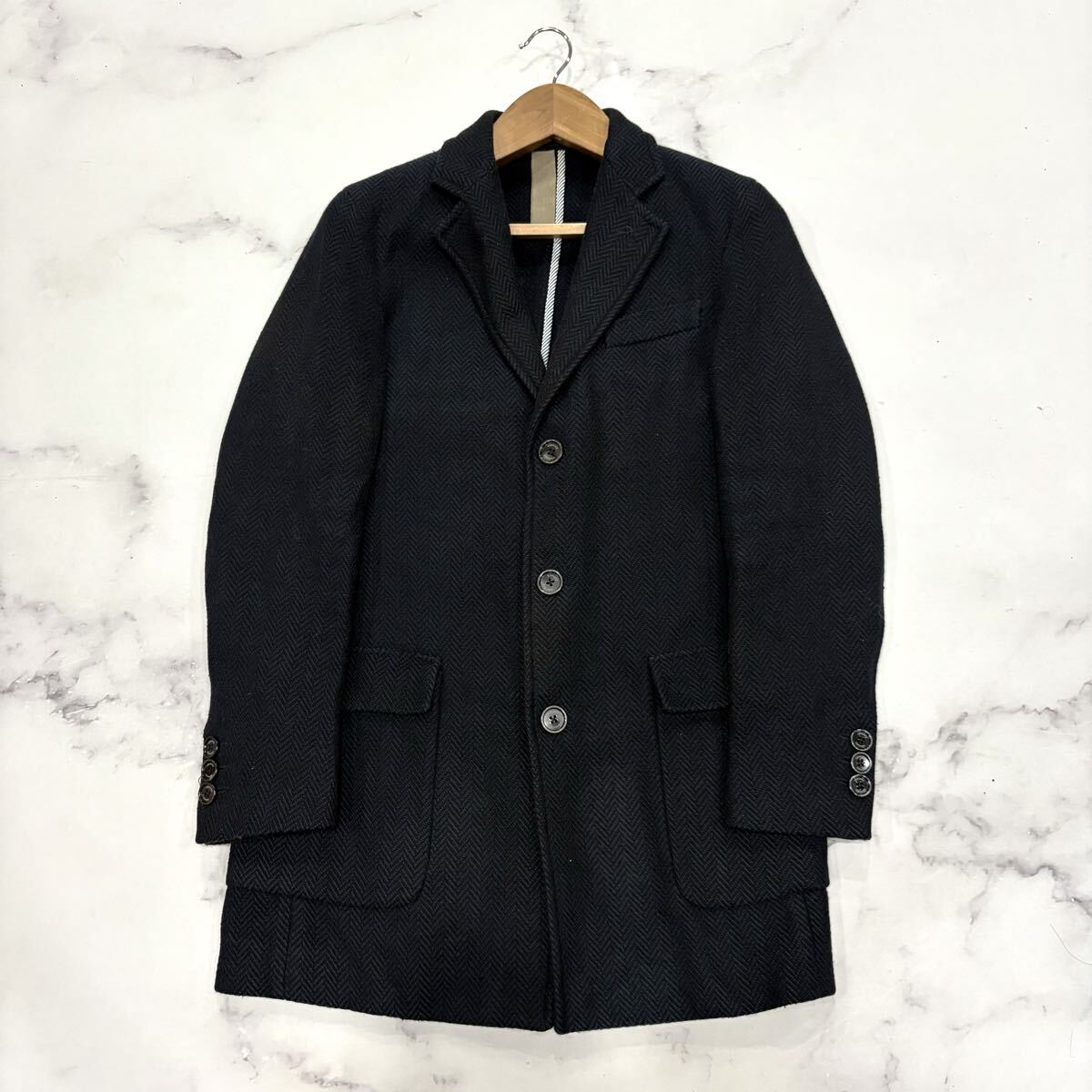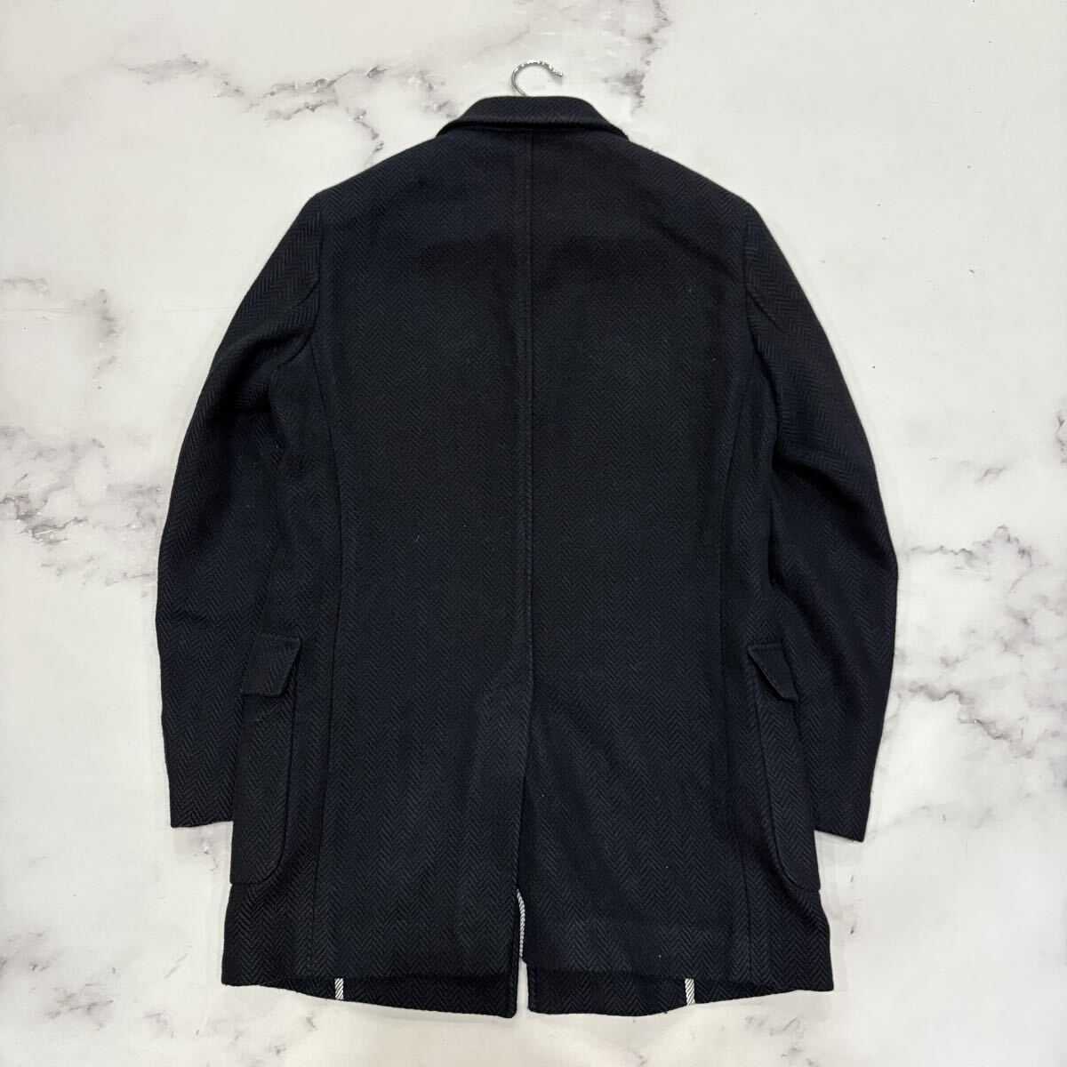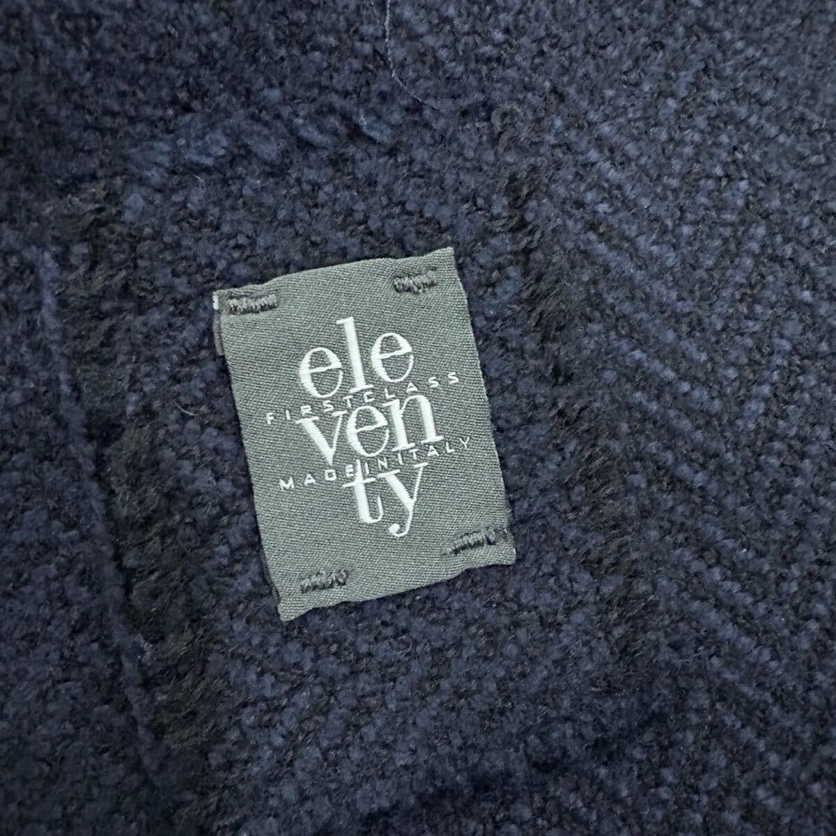AL ■ イタリア製 '洗練されたデザイン' eleventy イレブンティ WOOL&LINEN混 チェスターコート 44 メンズ 紳士服 アウター 古着 NAVY系