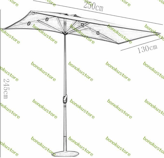 商品説明 この商品について100%ポリエステル、堅牢な金属-粉体塗装 頑丈でありながら軽量なスチール製。寸法:L250 x W130cm、ポール直径:38mm。ベースは含まれていません開閉に便利なクランクハンドル付き。半分は、パティオ、テラス、小さな庭園、またはアパートのバルコ