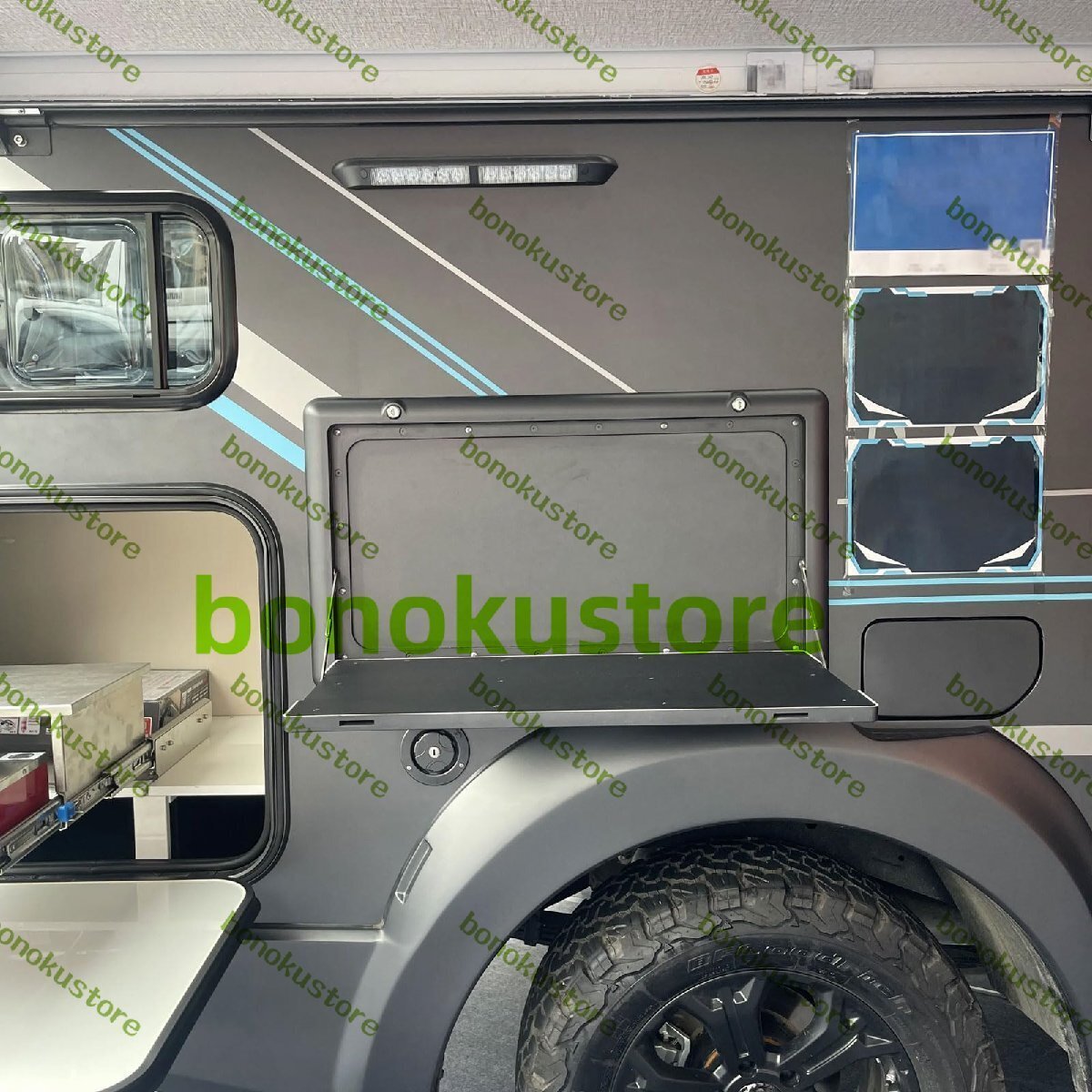 RV壁掛け折りたたみテーブル、ポータブル外部吊り下げキャンプ折りたたみダイニングテーブル、LED照明付き、ダブルロックデザイン、RV、商用車、トラック、キャンピングカー用