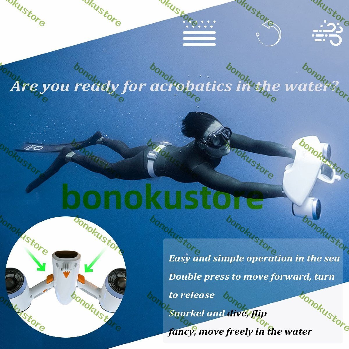 商品の情報 詳細情報 520Wの水中スクーターとアクションカメラマウントデュアルモーター40M防水シースクーター121WH充電式水中無人充電式の水中ドローン吊りキャビン1.8M / Sスキューバスクーターのための大人の子供初心者 (Color : Green)