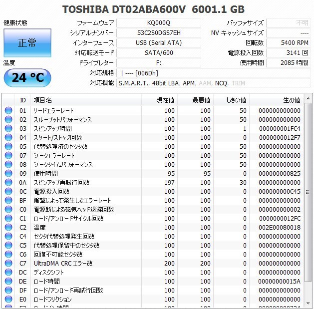 | 商品説明 | DIGA(ディーガ)用データ書込済の6TB増量用HDDになります、 DRで555時間の録画が可能になります。 届きましたら元のHDDと交換してフォーマットするだけです、 PCによる書き換えや設定は必要有りません。 必要な物ははプラスドライバー1本とリモコンのみです、 交換手順は写真入りの説明書をお付けします。 前のHDDの録画内容は見れなくなりますので、 事前に外付けHDDやブルーレイにダビングして置く事をおすすめします。 HDDは6TBのTOSHIBA製 DT02ABA600V 東芝製内蔵HDD サイズ:3.5インチ 容量:6TB 回転数:5400rpm バッファ:128MiB 「DT02-Vシリーズは、最大32台のカメラをサポートする監視ビデオシステム向けに設計されました。 様々な監視用ビデオレコーダー(SVR)やネットワークビデオレコーダー(NVR)と互換性を持ち、 データ保持期間や画像解像度に合わせて容量をカスタマイズできます。 さらにディスク回転数5400rpmの低消費電力デザイン。」 V無しのDT02ABA600はPC用途の廉価版で、 メーカー推進使用時間は1日8時間週5日ですがこちらは、 24時間365日連続使用可能な高耐久で高価なHDDです。 DMR-BXT3000(通常録画領域250GB、 チャンネル録画領域5750GB。 通常録画領域1TB、チャンネル録画領域5TB。 どちらかお選び頂けます。) DMR-BZT900 DMR-BZT800 DMR-BZT701 DMR-BZT700 DMR-BZT600 DMR-BWT500 DMR-BZT9000 DMR-BZT910 DMR-BZT815 DMR-BZT810 DMR-BZT715 DMR-BZT710 DMR-BWT510 DMR-BZT920 DMR-BZT820 DMR-BZT725 DMR-BZT720 DMR-BWT620 DMR-BWT520 DMR-BZT9300 DMR-BZT830 DMR-BZT730 DMR-BWT630 DMR-BWT530 DMR-BRT300 DMR-BRT210 DMR-BRT220 DMR-BRT230、3.5インチHDDのみ。 TZ-BDT910M TZ-BDT910F TZ-BDT910P 提供出来るのは以上の機種のみとなります。 |