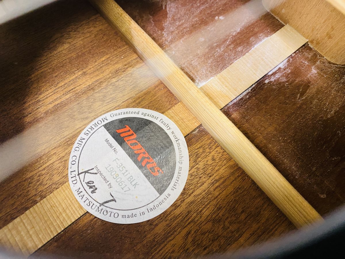 ■MORRIS F-351i BLK モーリス アコースティックギター アコギ トップ単板 生産終了モデル ソフトケース付き