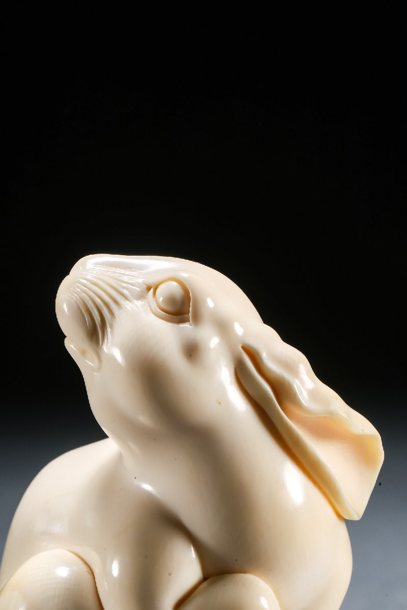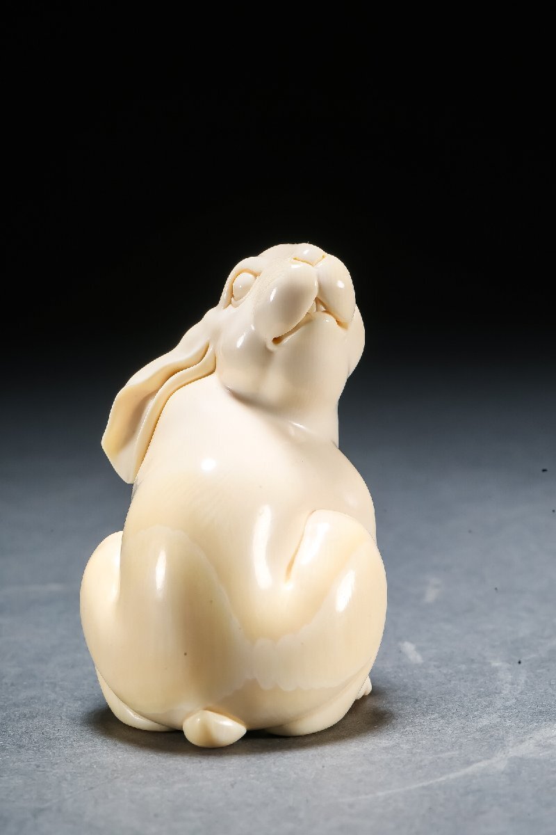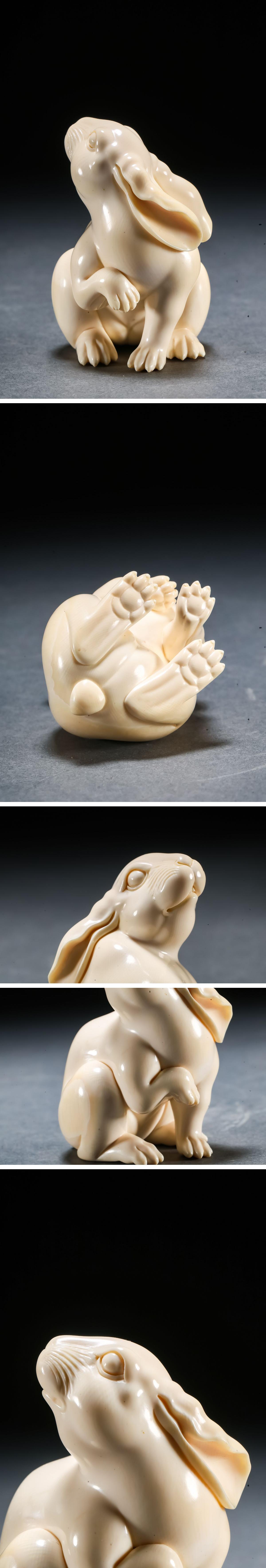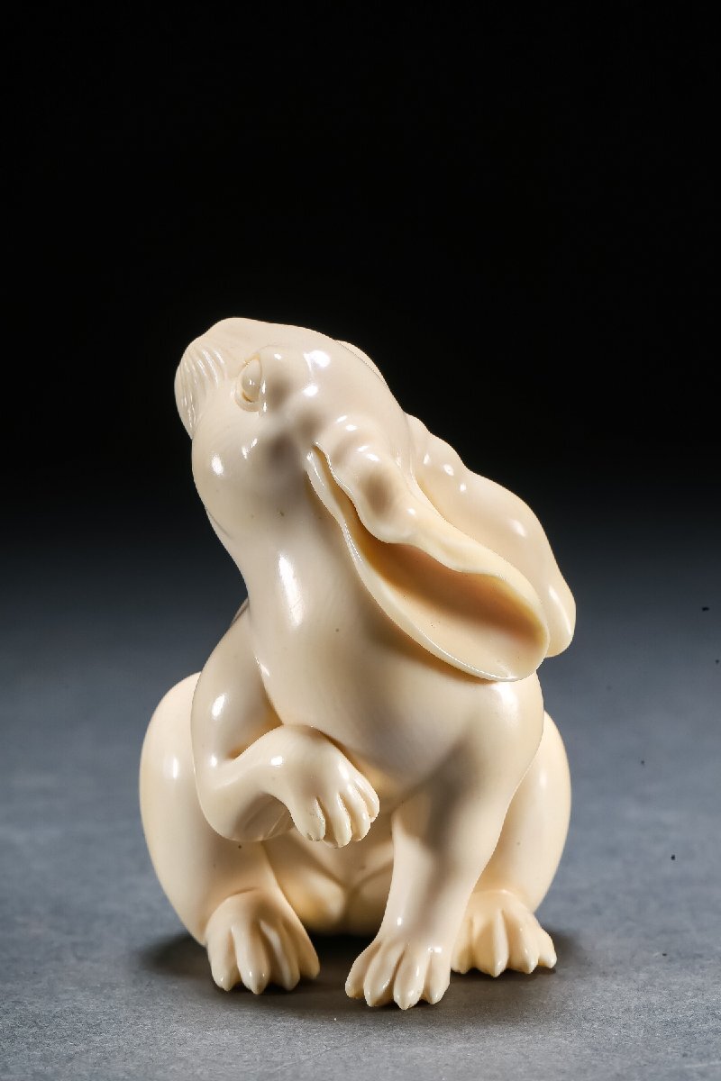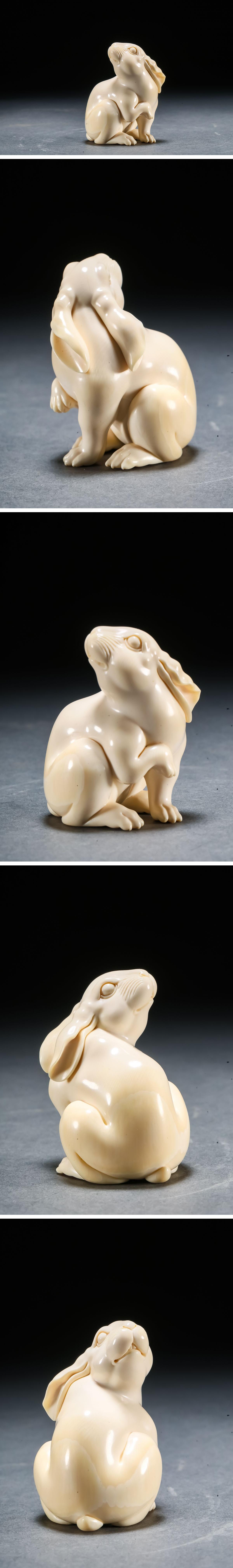 【雲錦】某有名オークション買入 時代物 特殊白材 兎紋根付 豪華芯料使用 骨董品 古美術Z-46S5