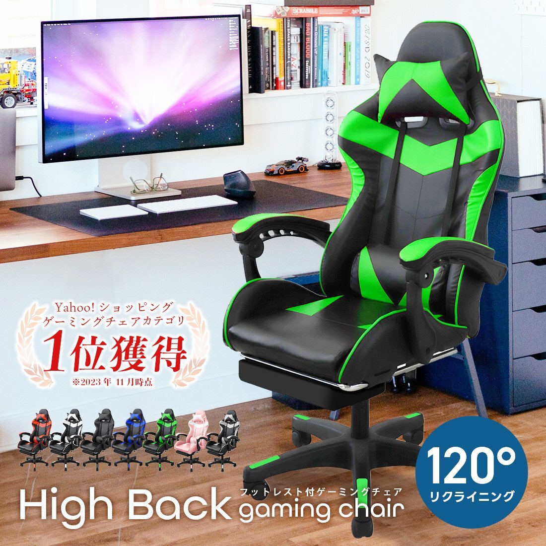 | 合成レザー素材を使用したゲーミングチェアです。 体をすっぽり包み込むバケットシートデザインで、綺麗な姿勢を保ちます。 頭部と腰部をサポートするクッション付きで、長時間座りっぱなしでも疲れにくいフィット感です。 背もたれは最大約120度まで、座面の高さは最大約13cmまで スムーズに調節できます。 【商品説明】 カラー:【グリーン】 サイズ ・本体:(約)幅570×奥行580×高さ1140~1270mm その他 ・肘付タイプ ・格納式フットレスト付き ・可動キャスター付き ・360度回転 ・昇降機能付き ・リクライニング機能付き ・ロッキング機能付き 保証期間:7日間 ※商品到着後7日以内の初期不良・破損のみご対応させていただきます。 【注意事項】 ・お客様組立の商品です。 ・組立て方や商品の個体差により、サイズは若干差異が生じる場合がございます。予めご了承下さい。 ・使用環境によりキャスターの潤滑具合が悪くなることがあります。ご了承下さい。 ・商品は、モニターによって色合いが異なって見える場合があります。 ・仕様・デザインは改良のため予告なく変更することがあります ★ゲーミングチェア カラー一覧★ ■ レッド ■ ブルー ■ ブラック |