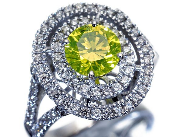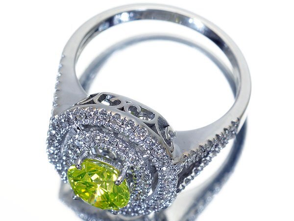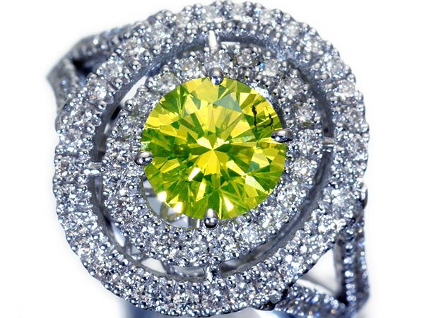 1石で1.27ctと超大粒サイズで、SⅠ-1クラス級の抜群の透明感に色鮮やかな極上の蛍光アップルグリーンカラーの輝きを魅せてくれる超希少な超大粒極上1粒アップルグリーンダイヤモンドです!