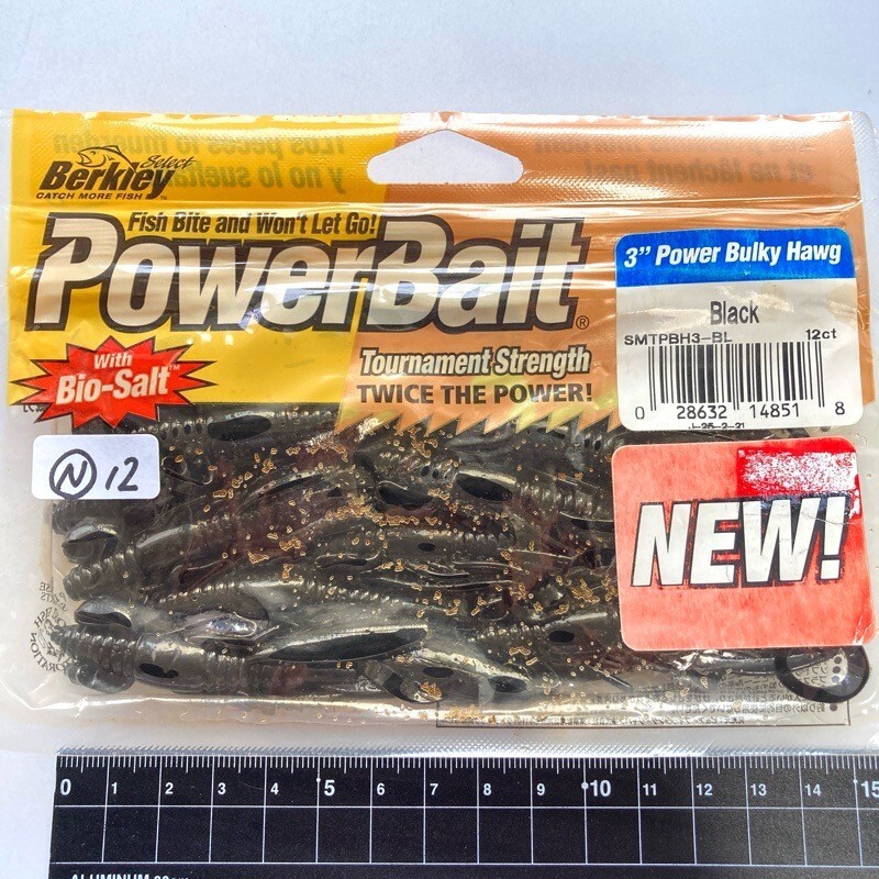 815050 新品 バークレイ 3インチ パワーバルキーホッグ 12本 #ブラック BERKLEY バス釣り パワーホグ 根魚 カサゴ チニング