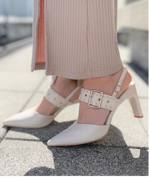 参考商品名:【R&E】スタッズベルトストラップスティックヒールパンプス