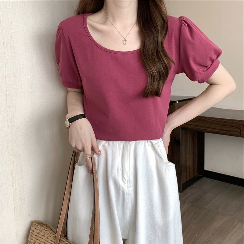 女性 レディース トップス ブラウス スリム 夏 ラウンドネック