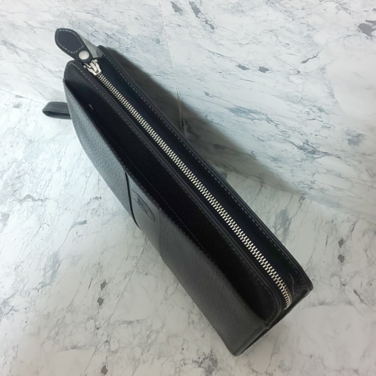 上質シュリンクレザーにホース型押しロゴ×裏地ノヴァチェックが素敵なセカンドバッグ。
