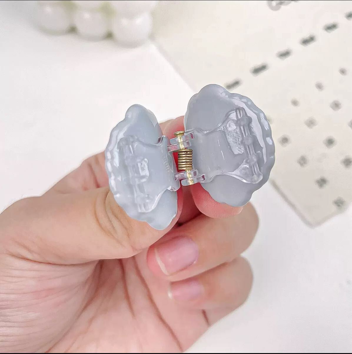 シンプルな線で描かれた表情がとても可愛らしく、ヘアアレンジのワンポイントにぴったり。
