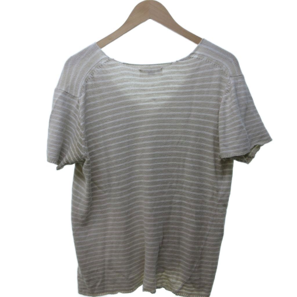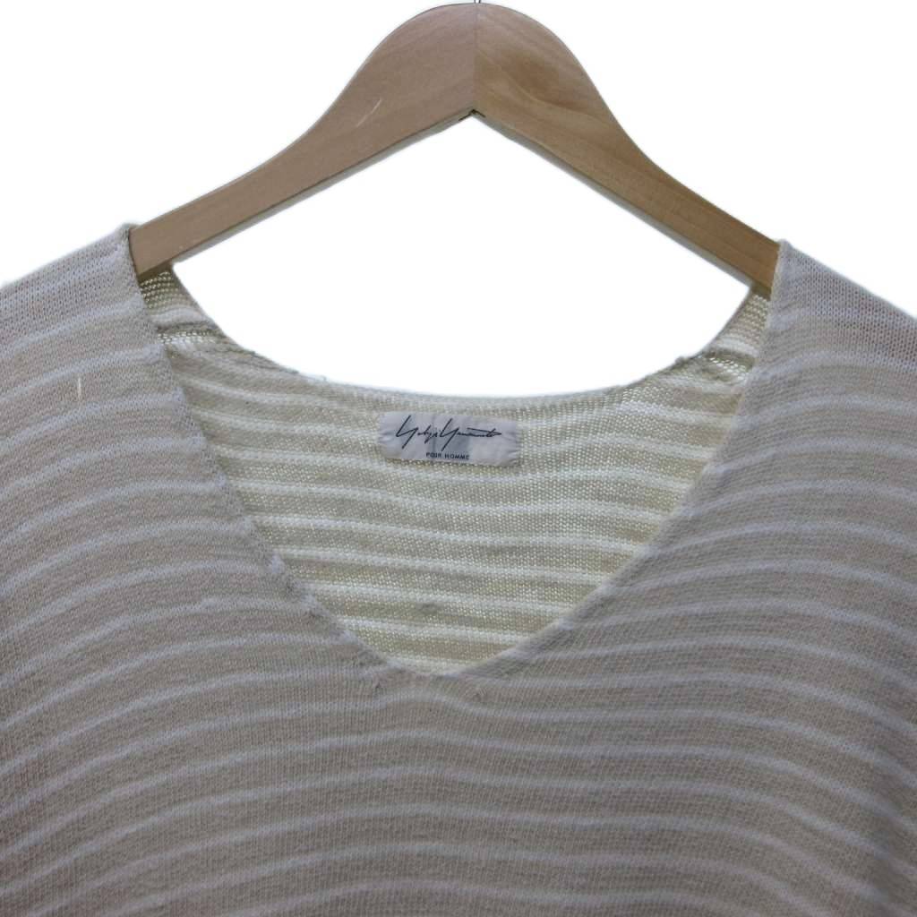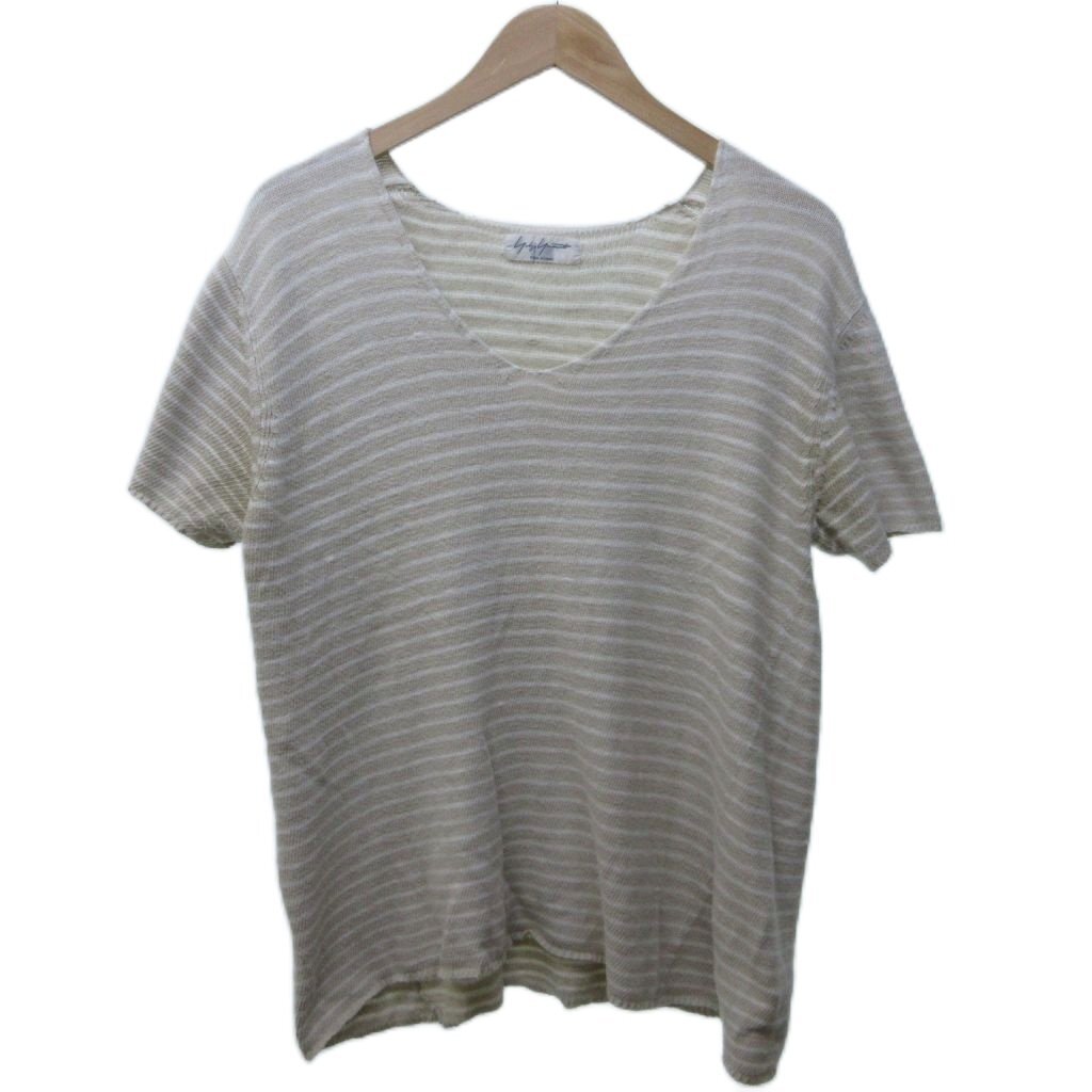 ヨウジヤマモトプールオム YOHJI YAMAMOTO POUR HOMME ボーダー柄 Tシャツ カット- 半袖 Vネック ベージュ 3 約L IBO79