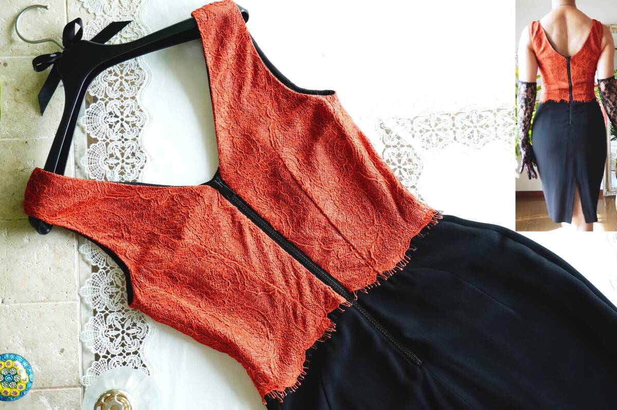 表裏シルク(光沢レースはレーヨン)から成る 立体美形裁断 淑女タイトワンピース(お膝丈)です*(#^.^#)