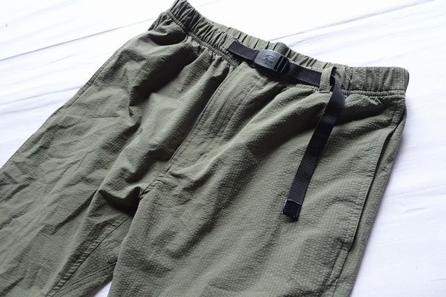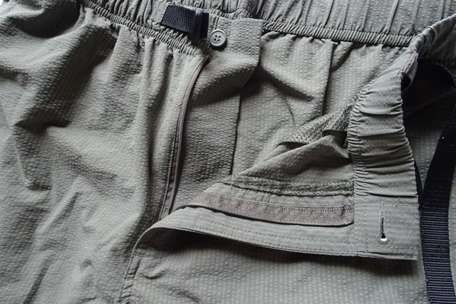 Find-Out/品番2204/クライミングパンツ/ジップフライ/ウエストテープベルト/シアサッカーストレッチ性素材/緑系カーキ/Mサイズ(9/22R7)