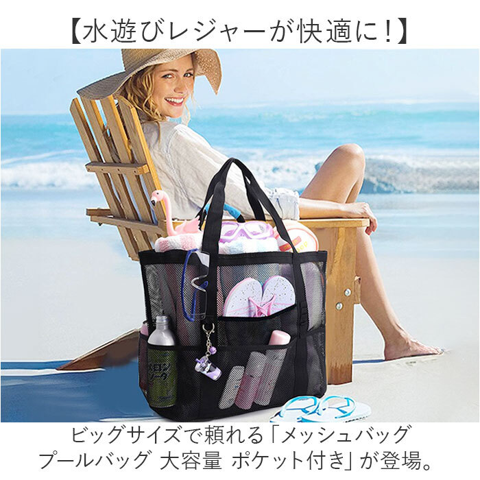 商品名 | メッシュバッグ プールバッグ 大容量 ポケット付き |