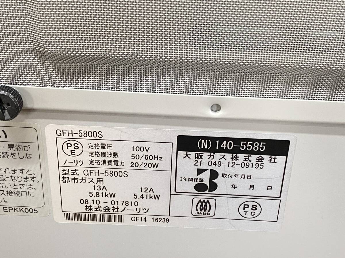 E-705 【同梱不可】980円~ 現状品 大阪ガス ガスファンヒーター GFH-5800S ホワイト 暖房器具 通電確認済み