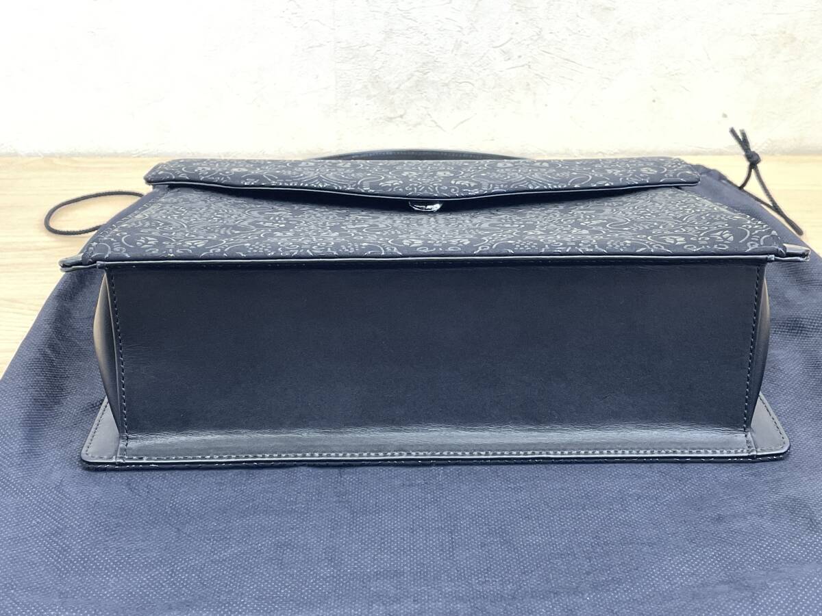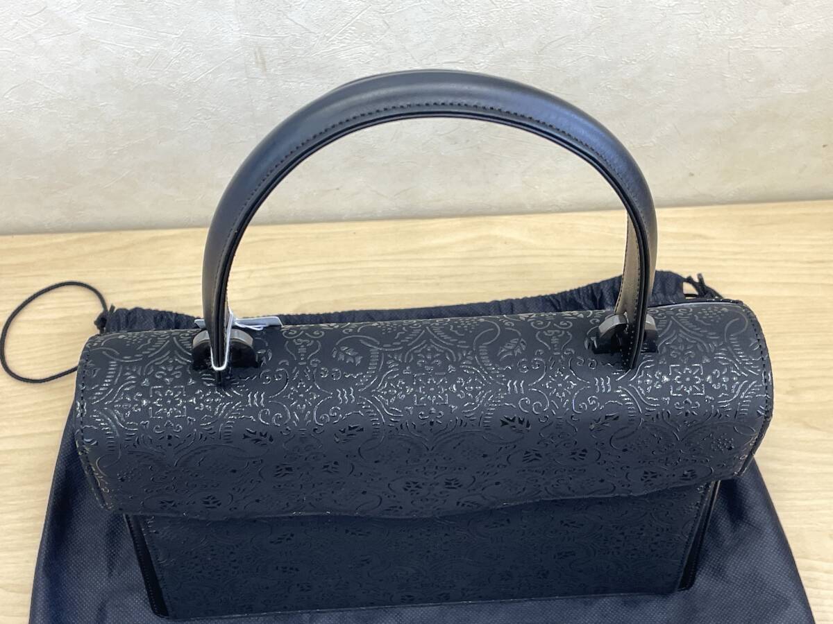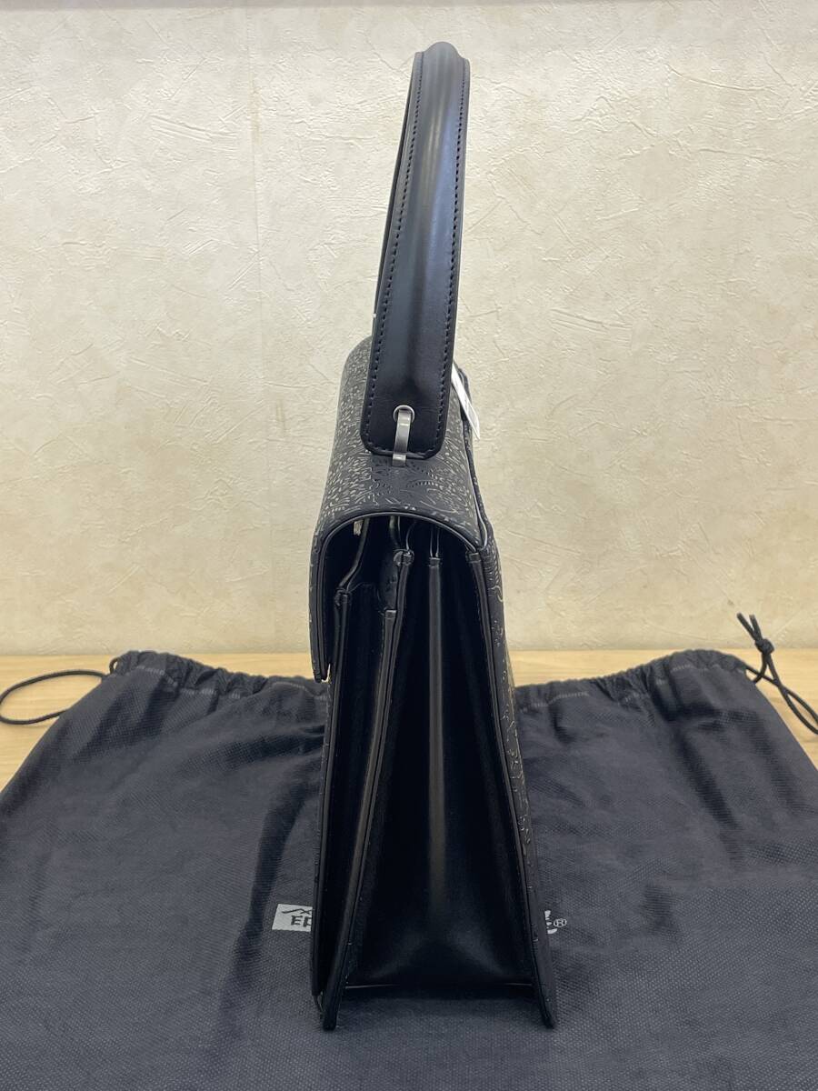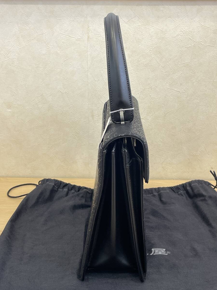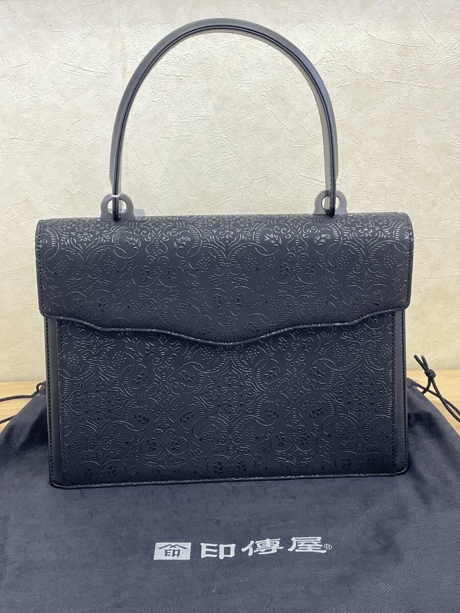 未使用品 印傳屋 INDEN-YA レザー革 黒漆 6437 柄 ハンド トート バッグ 手提げ 鞄 黒/ブラック 日本製 冠婚葬祭 定価¥54000