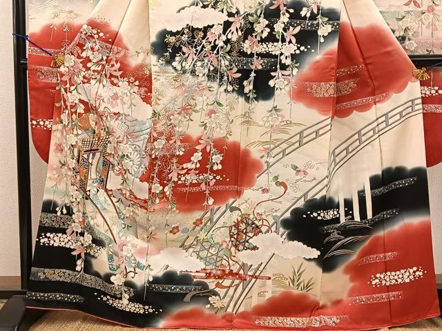 身丈 164.5cm(肩から) 裄丈 66cm 袖丈 111cm 縫込み 4.5cm 袖幅 34.5cm 前幅 23cm 後幅 28.5cm 着物縫いこみ 内揚げ 3.5cm 裄 お袖側 約1.5cm 身頃側 約2cm 《 サイズについてはこちら 》 |