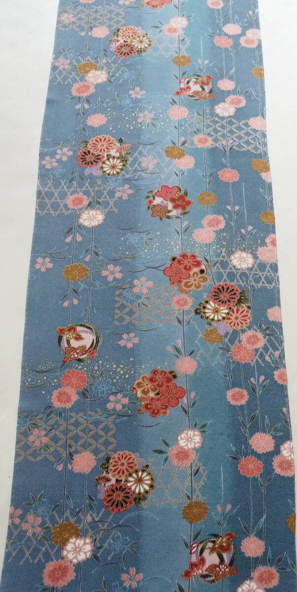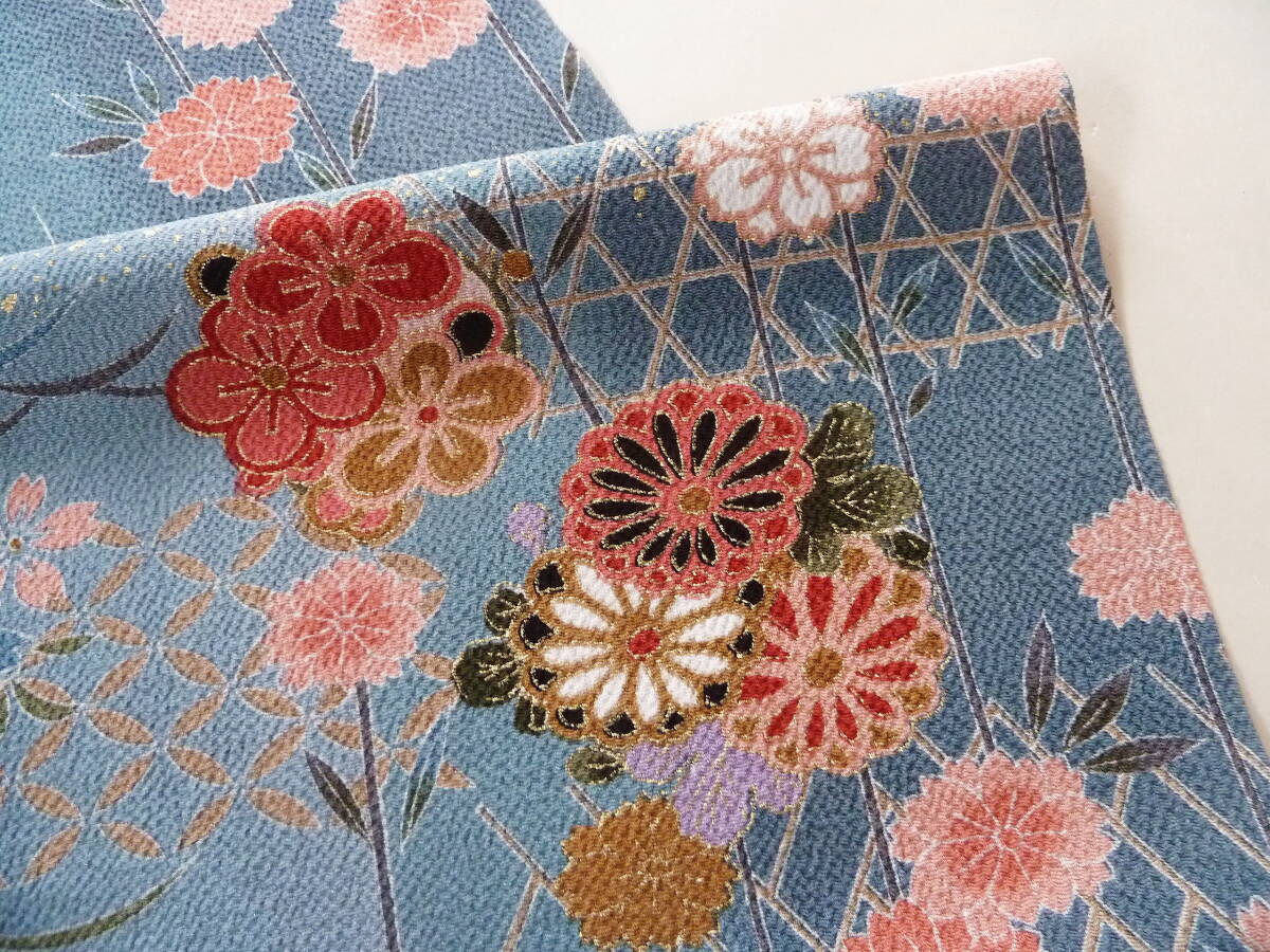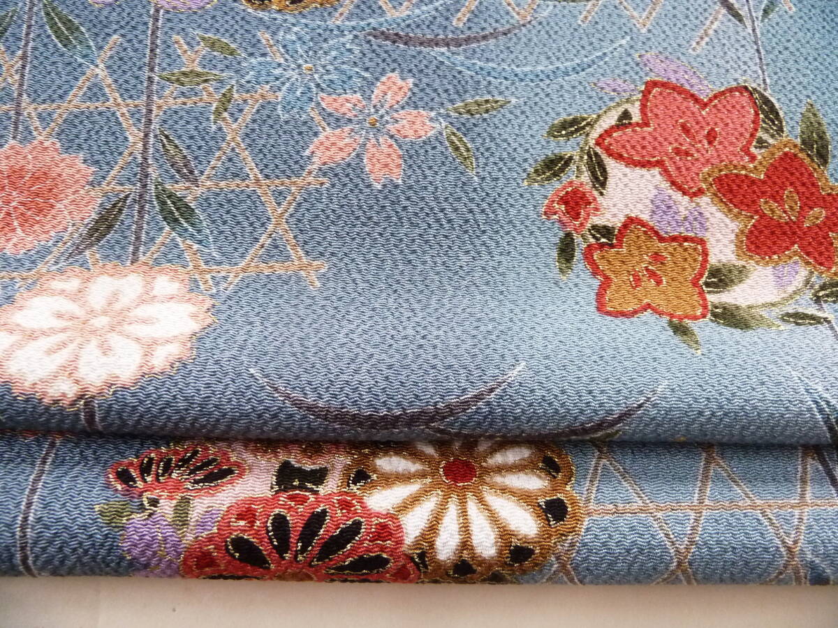 こちらは目立ったシミ汚れなくきれいなお品です。小さなお人形さんの着物やポーチなどの和小物作り、ちりめん細工などにいかがでしょうか。
