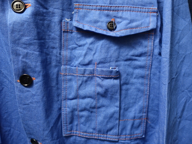 ●商品説明● | 色は画像より少し落ち着いた感じです。 光の関係でどうしても背面の写真が 明るく写ってしまいますが 実物は正面の画像と大差ありません。 生産国不明、 コットン100%、 フロントはボタン留め、両袖先にリブ、 デザイン性のある変形ポケット、 画像のように両脇は通気口になっています。 デザイン、柄など 細部にも拘られたクオリティは大変素晴らしいです。 長年付き合っていける一着だと思います。 お好きな方、お探しだった方いかがでしょうか? サイズ 56 ※実寸を参考にして下さい。 平置き実寸 肩幅 約52cm 身幅 約64cm 着丈 (背面、襟、襟リブ含まず)約73cm 袖丈(肩から袖先まで計測)約64cm ※素人採寸ですので多少の誤差はお許し下さい。 状態 全体的に使用感、色あせがあります。 全体的に保管時のシワがありますが 洗濯後のアイロンやクリーニングで取れると思います。 大変古いビンテージ商品ですので その他、使用感、色あせ、汚れなどはあります。 着用の際、特に問題のあるダメージはないように思います。 古着慣れされた方でしたら問題ない コンディションだと思います。 計測には正確を期していますが計測者、 計測方法に依っての誤差はご容赦下さい。 ~mm、cm大きい、小さいという様なクレームはご遠慮下さい。 状態に関しては慎重に確認し掲載しておりますが、 古い物ですので見落とし等ある可能性も御座います。 詳細画像、説明を掲載しておりますので 状態等に関するクレーム等は申し訳ありませんが、お受け致しません。 気になる点はご質問頂いた上で、ご理解、ご了承頂けない方、 神経質な方のご入札はお控え下さい。 ビンテージ、ユーズド(中古衣料)、ジャンクにご理解頂ける方からの 入札お待ちしております。 |
