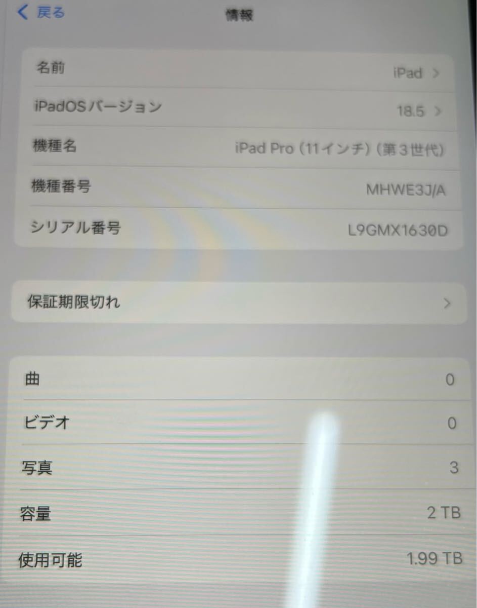 Apple iPad pro 11-inch 第3世代 WiFi-Cellular 2TB MHWE3J/A SIMフリー スペースグレイ 中古