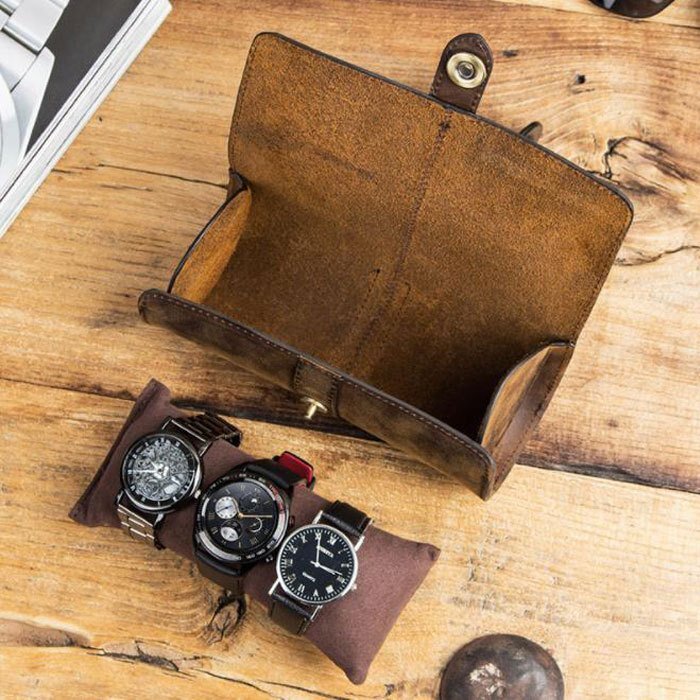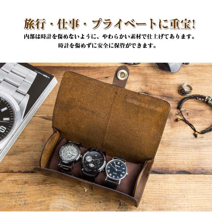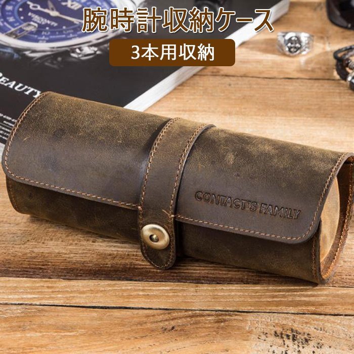 腕時計ケース 筒形 本革コーヒー 3本 | 時計 腕時計 ケース watch 観賞用 インテリア かっこいい コレクション ボックス コーヒー/1点