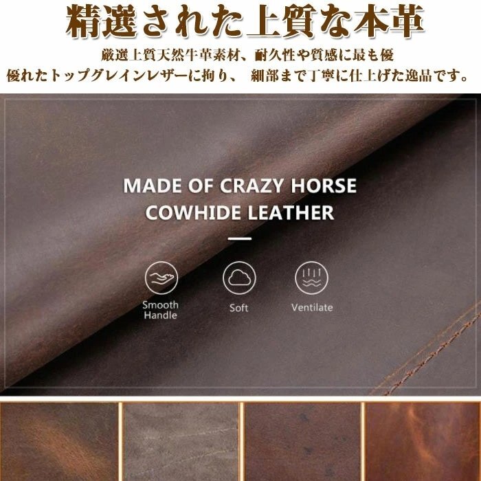 ◆厳選上質天然牛革素材、耐久性や質感 に最も優れたトップグレインレザーに拘り、 細部まで丁寧に仕上げた逸品です。