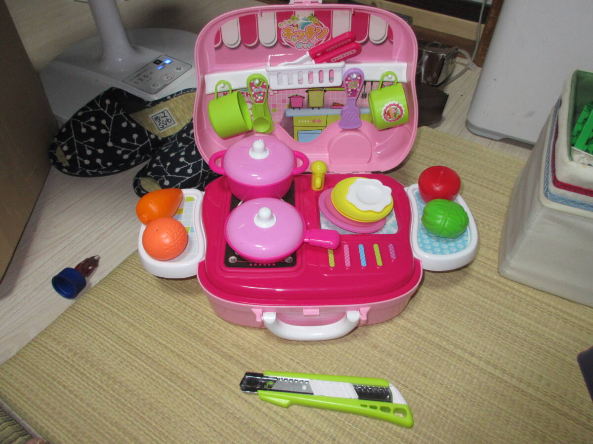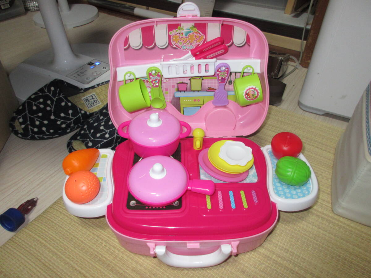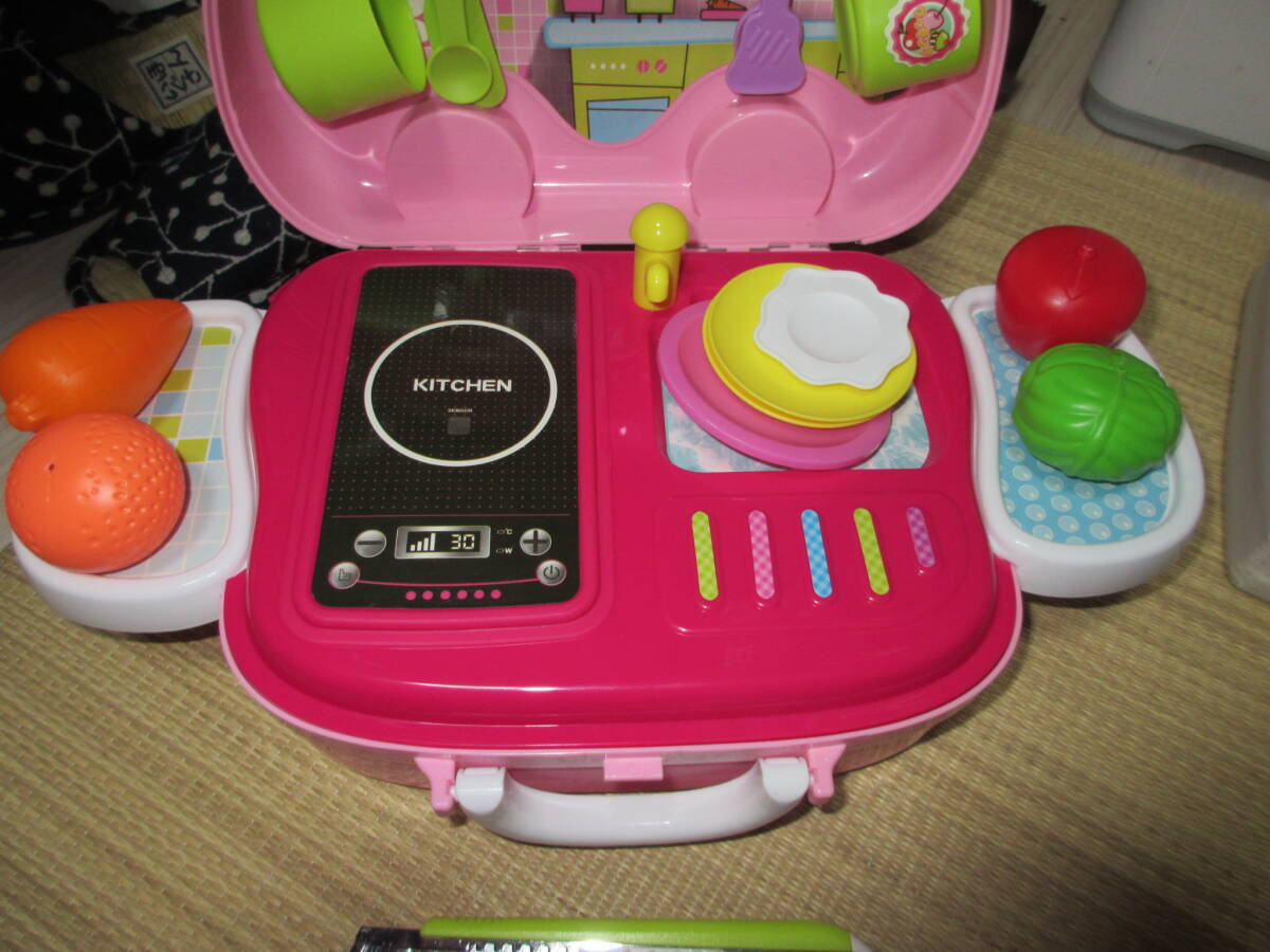R070917 断捨離 処分「女の子ままごと知育玩具 わくわくキッチンセット ほぼ未使用 孫機帰省用に購入も興味無」USED 元箱無し