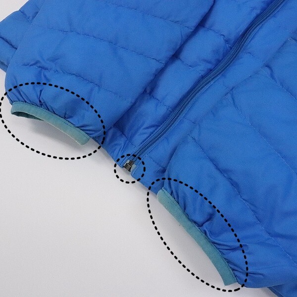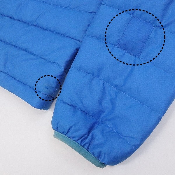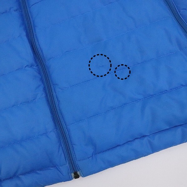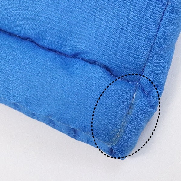 フロント下部など表面に数か所小穴と小傷、左裾の縫い目部分にダメージと接着跡、両袖口と裾に擦れと色褪せ、フロントジップ下のテープ部分に剥がれ、右ポケット表面にリペア、右裾付近に擦り切れがございます。