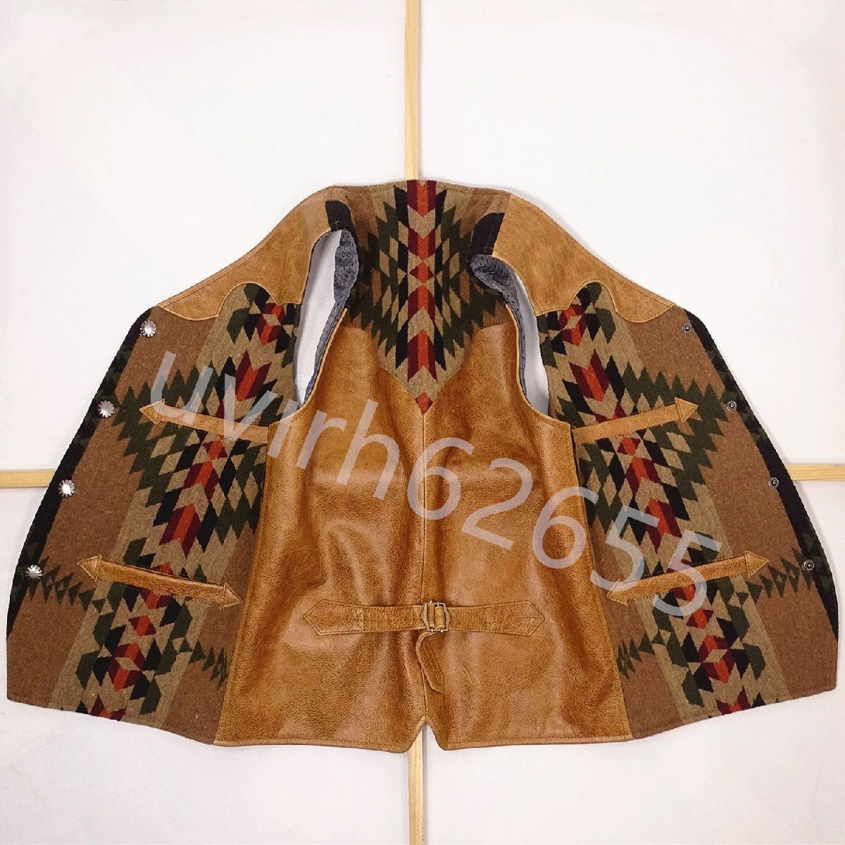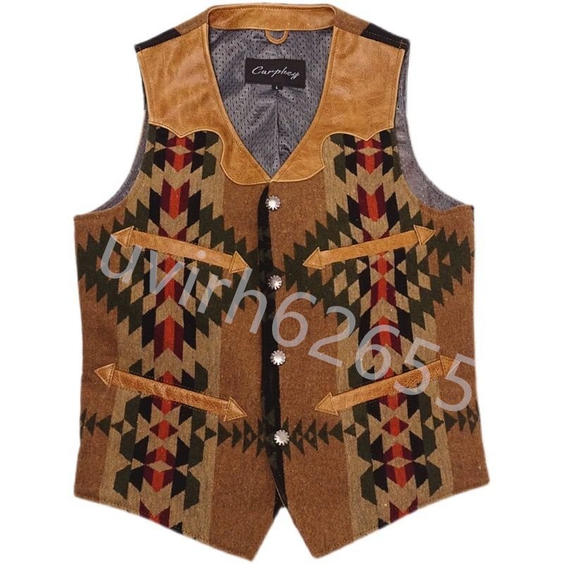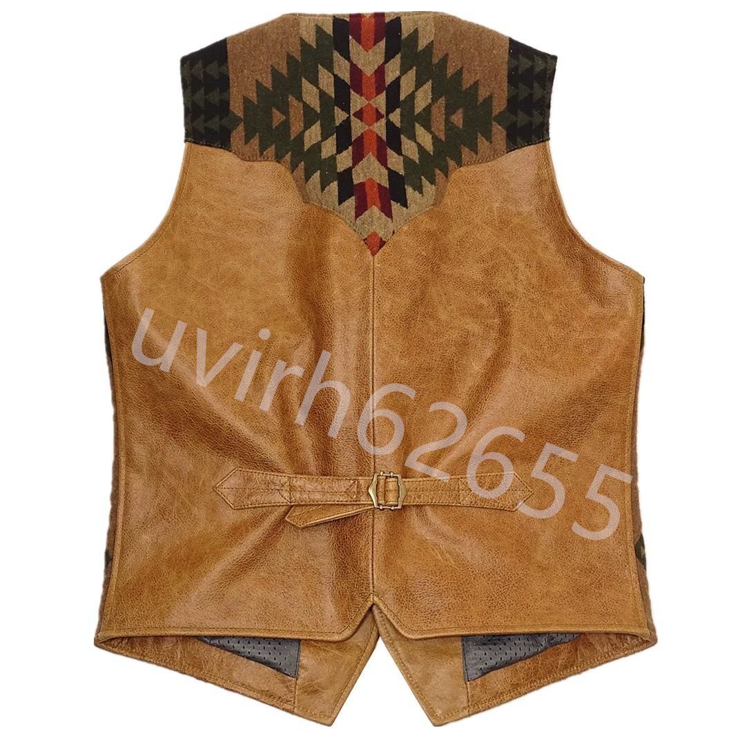 仔牛革 カーフスキン レザーベスト 本革 ナバホ柄 ワイルドターキー スエード 男女兼用 アメカジ VEST カウハイド M~5XL